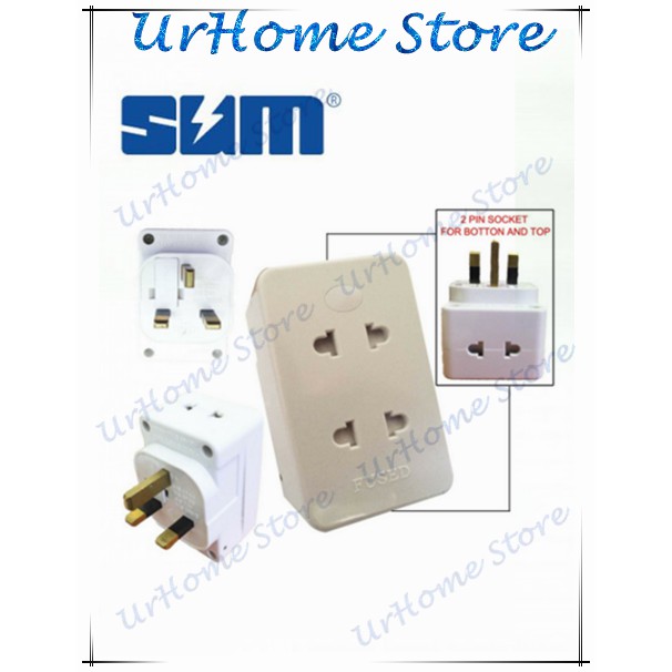Sum UK Plug / 3 Pin Adapter With 4 Way 2 Pin Socket