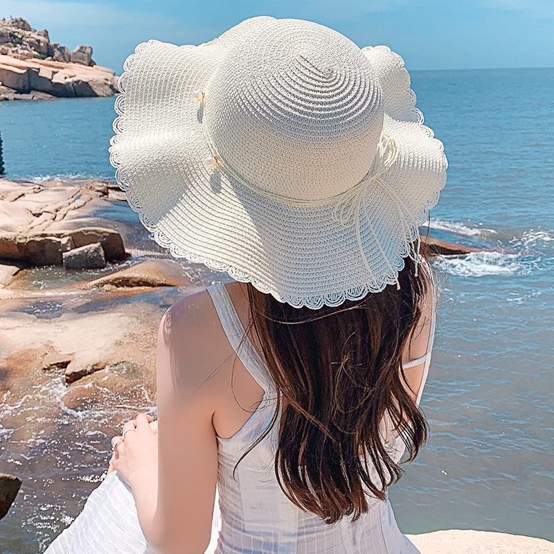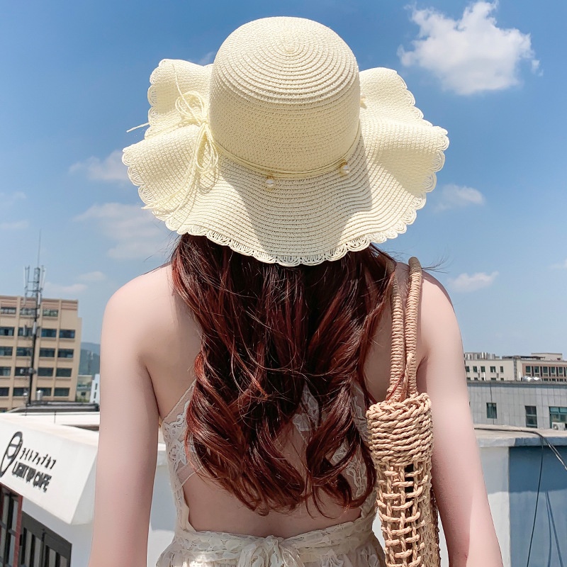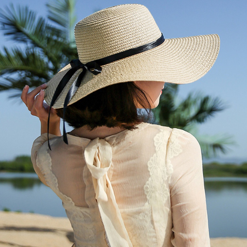 Summer Beach Straw Hat Ladies Big Brim Foldable Bow Beach Hat Female Summer Vacation Panama Girl Sun Hat