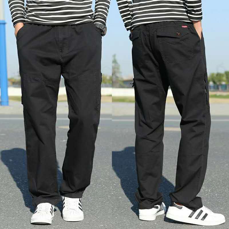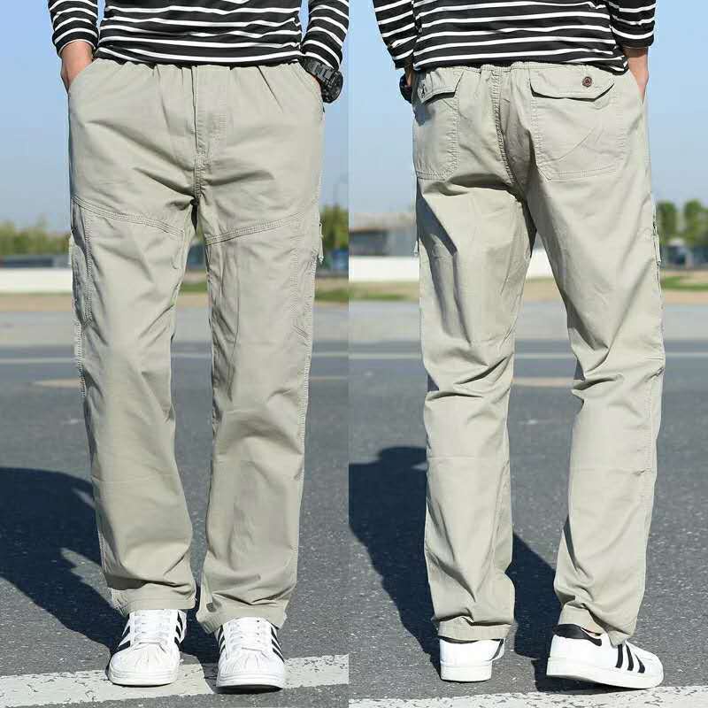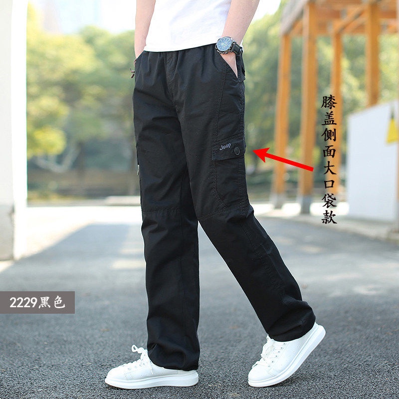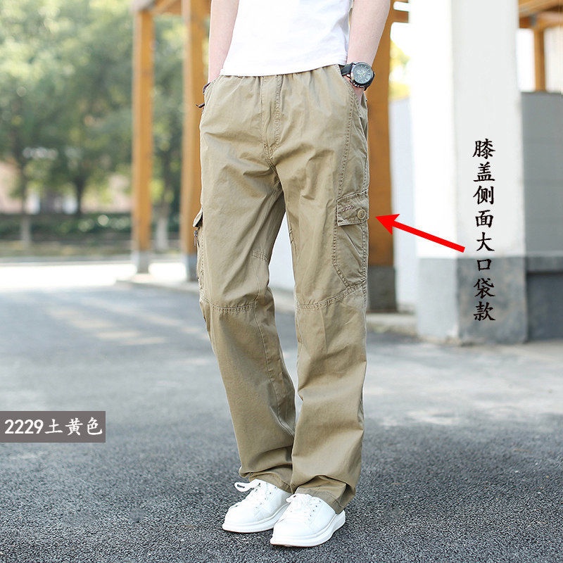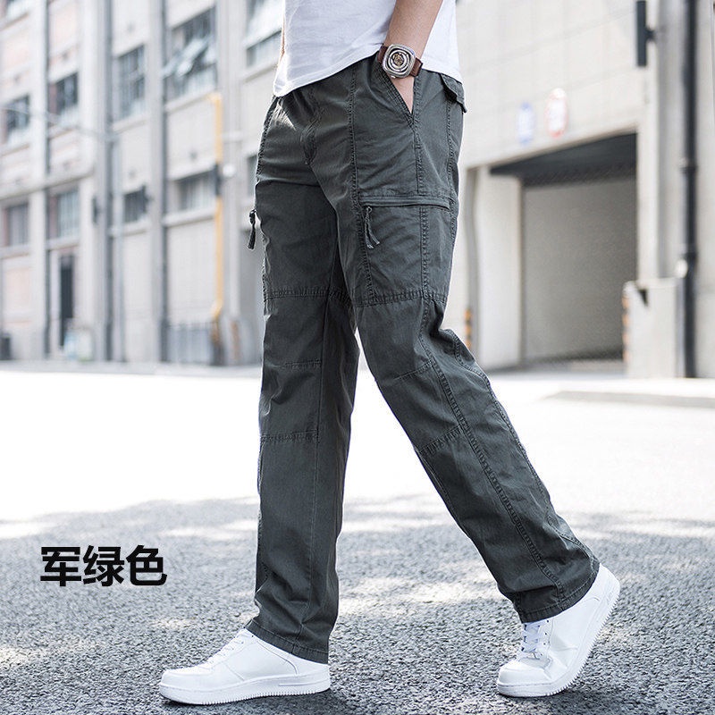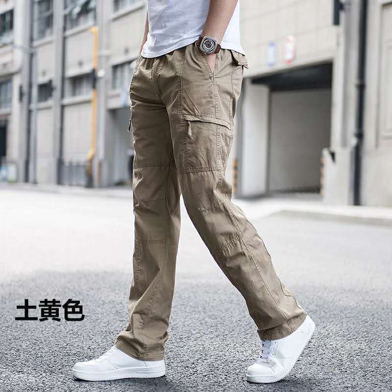 Summer Casual Pants Thin Loose-Fit Straight-Cut Large-Size Women's Pants Elastic Waist plus-Sized Pants Sports Multi-Pocket Cargo Pants