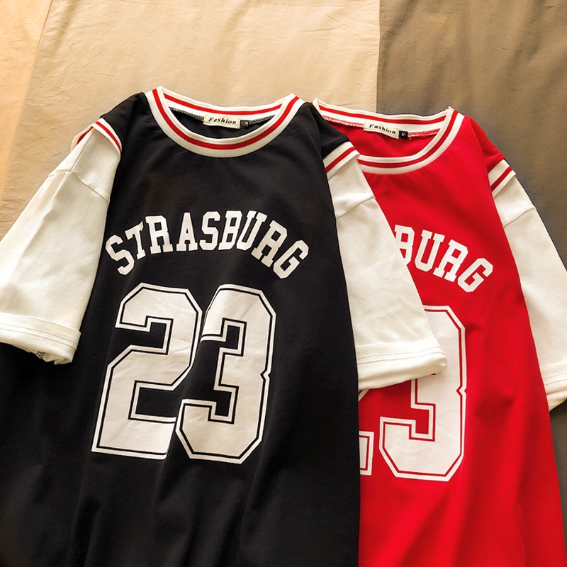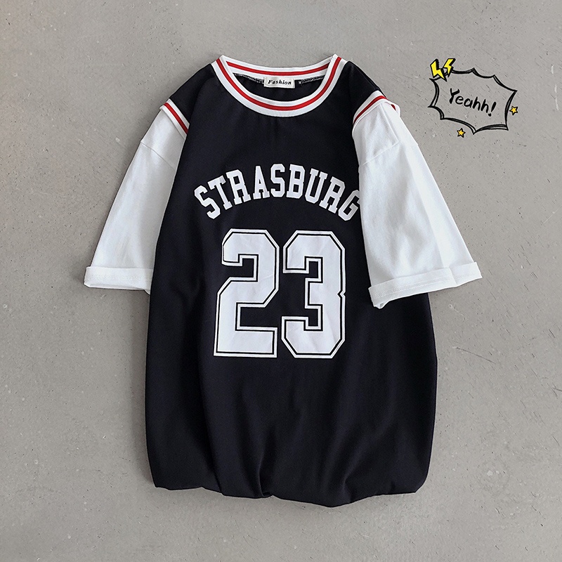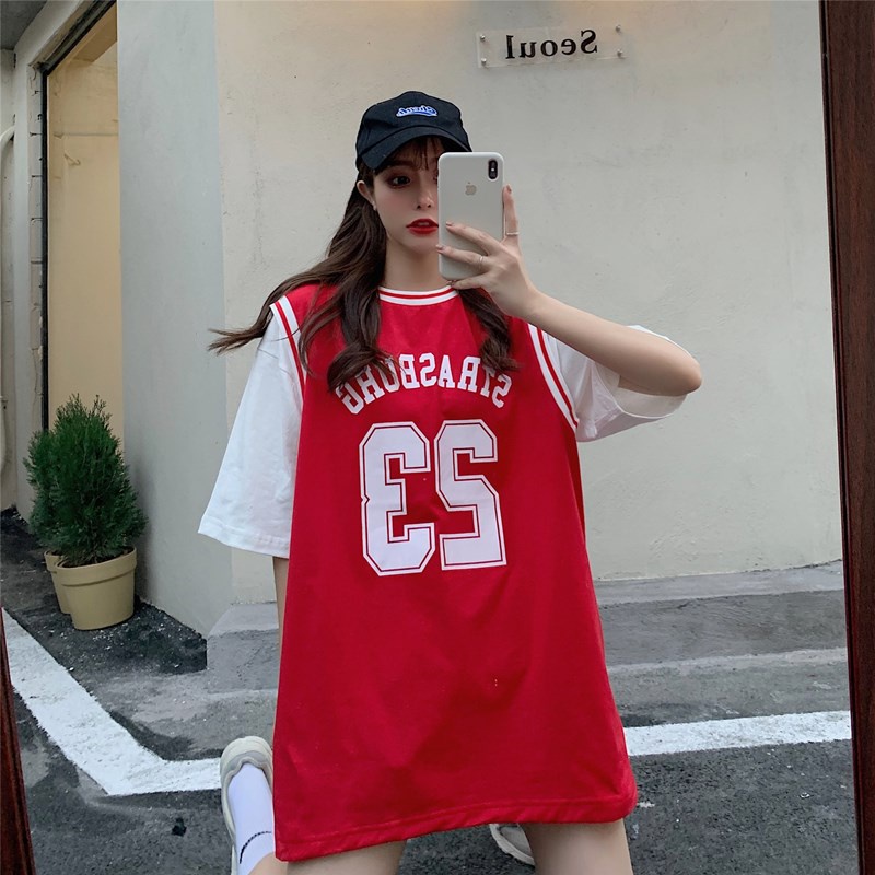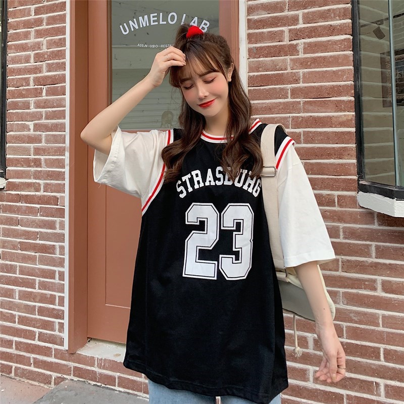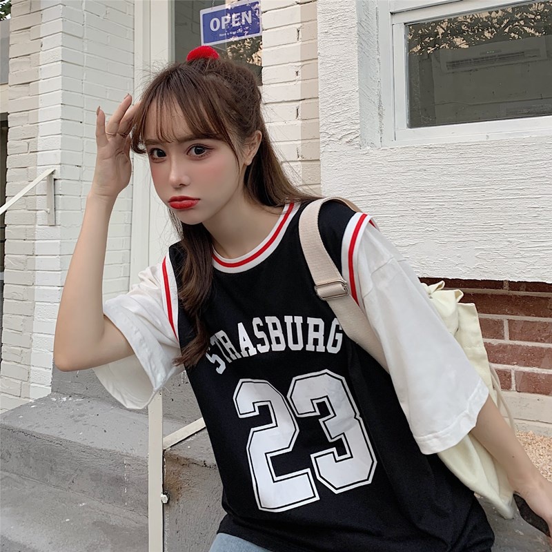 Summer Fake Two-piece Basketball Uniforms Short-sleeved T-shirt Ladies No. 23 Jersey Youth Leisure Sports Loose Five-point Sleeve T-shirt Top