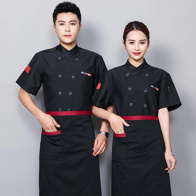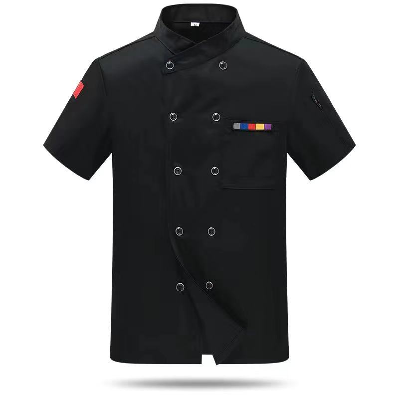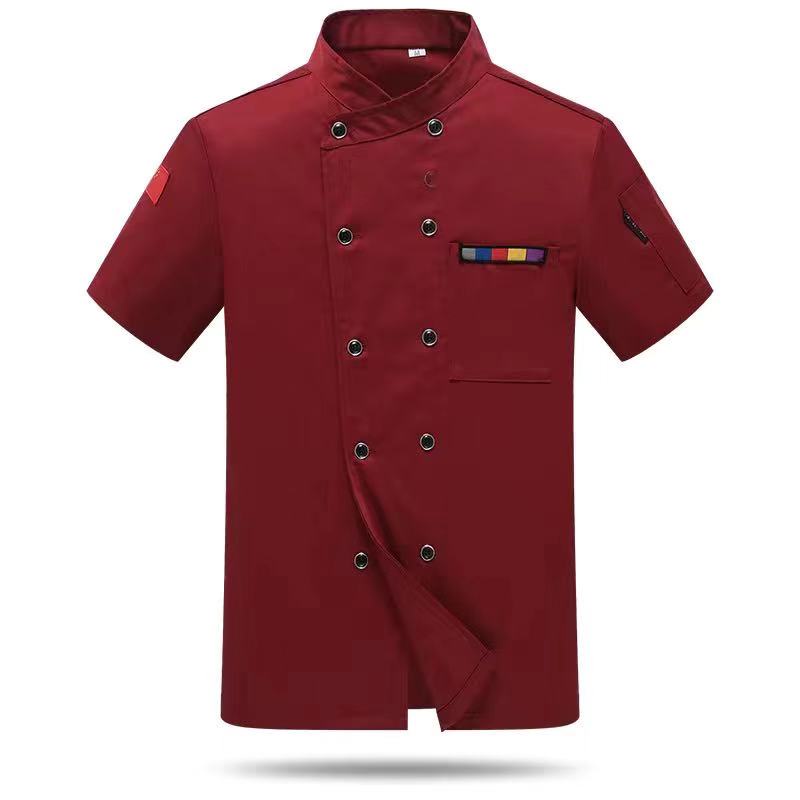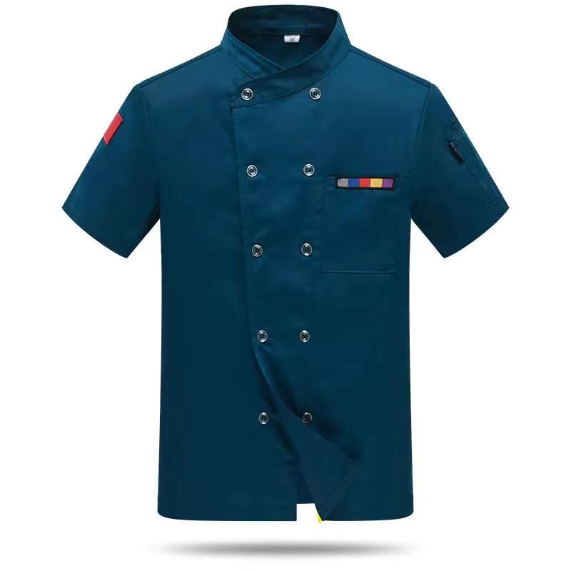 Summer Short Sleeve Chef Jacket Green Blue Women Men Waiter Workwear Restaurant Baker Tops Uniform