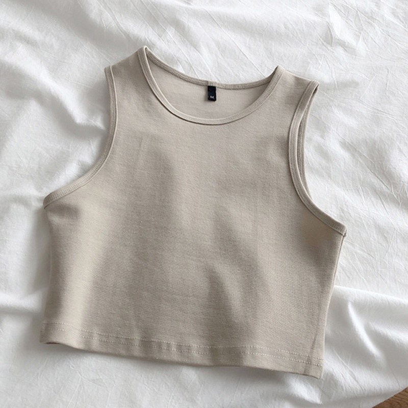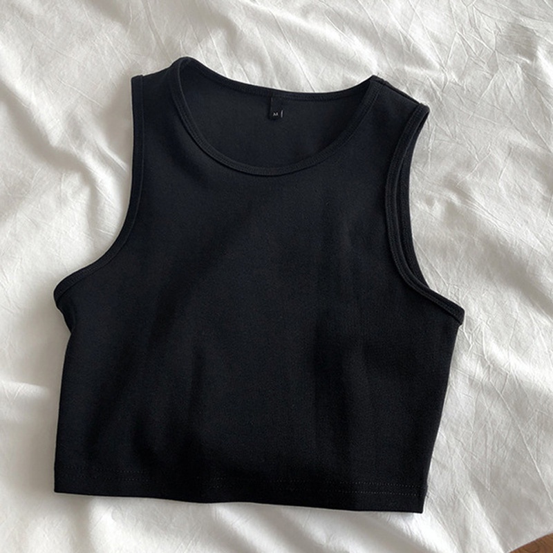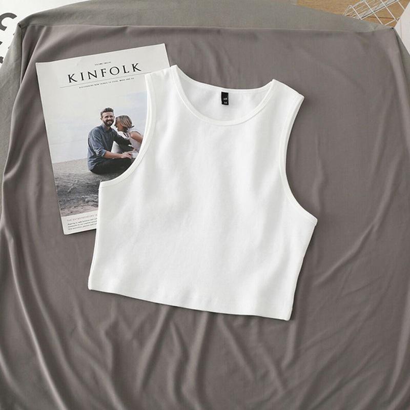 Summer Tanks Top New Ladies Retro Crop Top High Waist Slimming Stretch Slim Short Sleeveless Bottoming Top