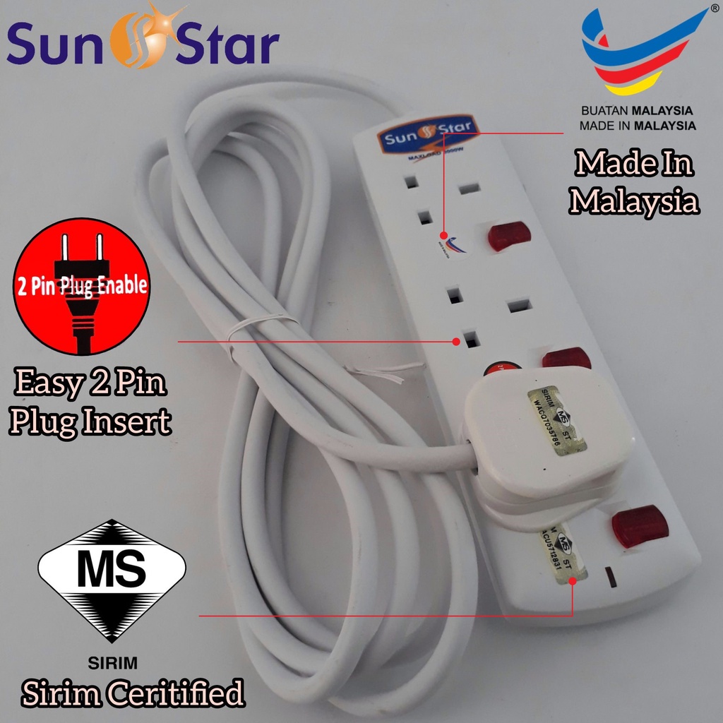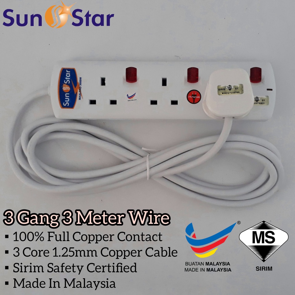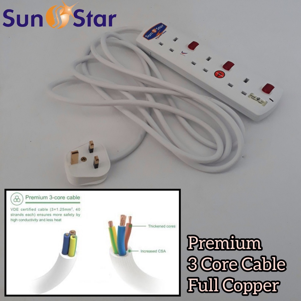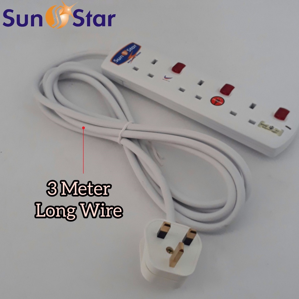 SunStar Heavy Duty 3 Gang Extension With 3 Meter Wire Trailing Socket For Home Electrical Appliance