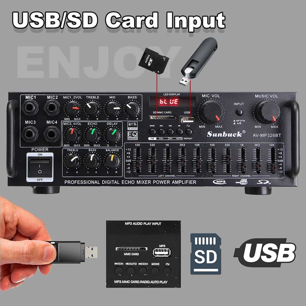 Sunbuck 2000W Power Amplifier Home Theater Karaoke Amplifiers Bluetooth 2 Channel Audio Stereo 10-Band EQ Equalization