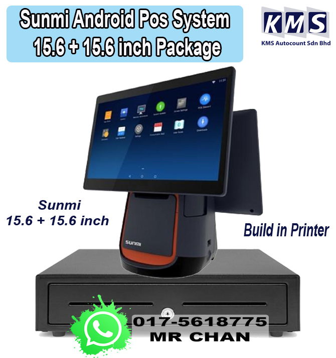 Sunmi Android Pos System 15.6 inch + 15.6 inch with Build in 80mm Printer Package (Include Training and Support)