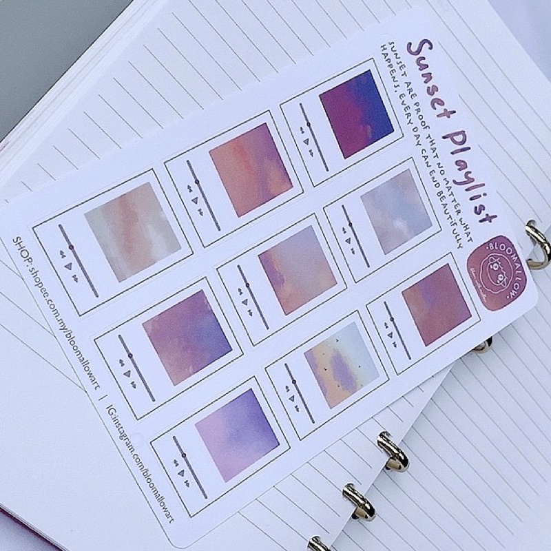 Sunset Playlist Sticker Sheet Aesthetic Journal Diary Scrapbooking Planner