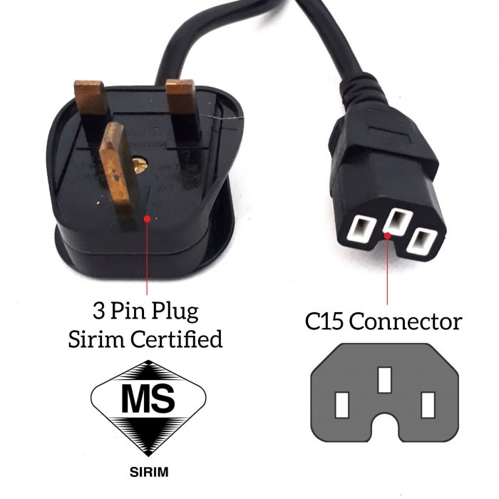 Sunstar 1.2m Auto Kettle Set / Heavy Duty AC Cord Connector Power Cable With Fuse For Rice Cooker, Kettle, TV, Computer