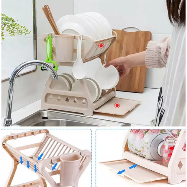 Sunxin Premium Plastic 2 Tier Layer Multipurpose Dish Rack Dish Drainer Kitchen Storage Rack Kitchen Organizer