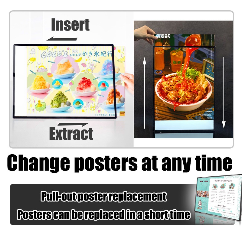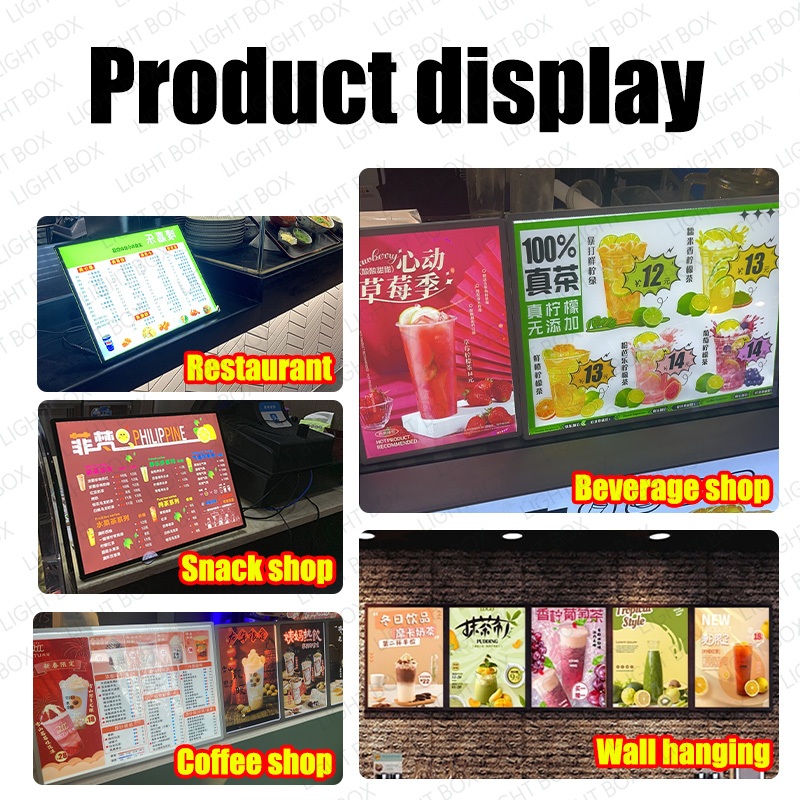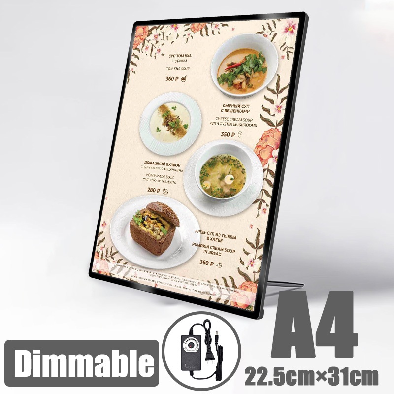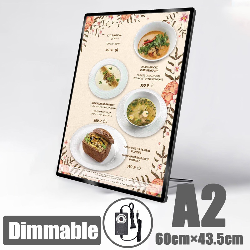 Super Bright LED Menu Board Display with Adjustable Stand, Brightness, and Viewing Angle. menu board with light