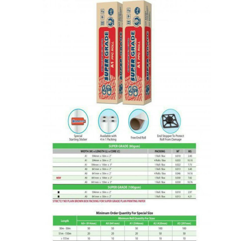 Super Grade Plan Printing Paper / Plotter Roll (4 rolls/box, Sono rolls)