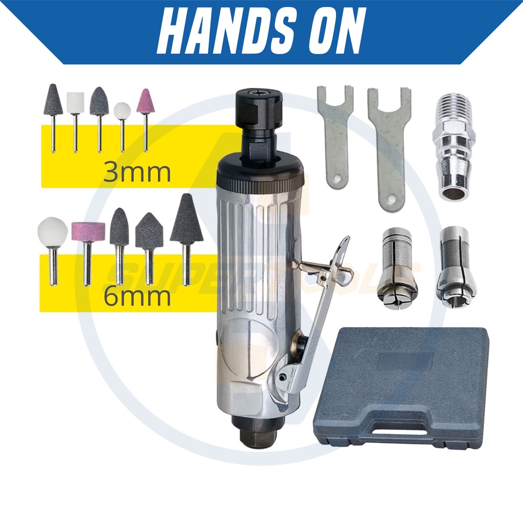 SuperTools Pneumatic Air Die Grinder Tool Kit Set/ Pneumatic Air Die Grinder Kit/ Kit Pengisar Pneumatik
