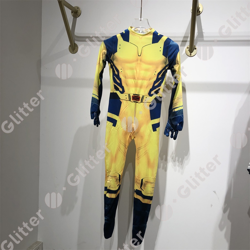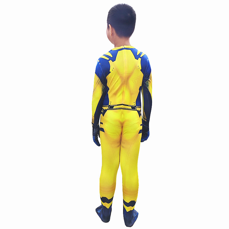 Superhero Deadpool and Wolverine Cosplay Costume for Adult Men Red Yellow Jumpsuit Mask for Kids Boy Halloween Party Clothes