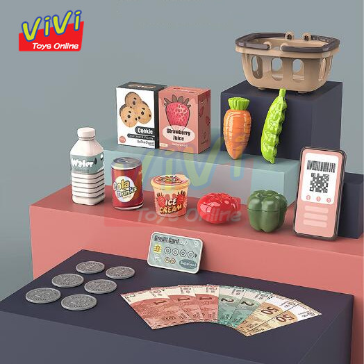Supermarket Shopping Cash Register Toys with Scanner and Sound Cash Drawer Mainan Cashier Kanak Kanak
