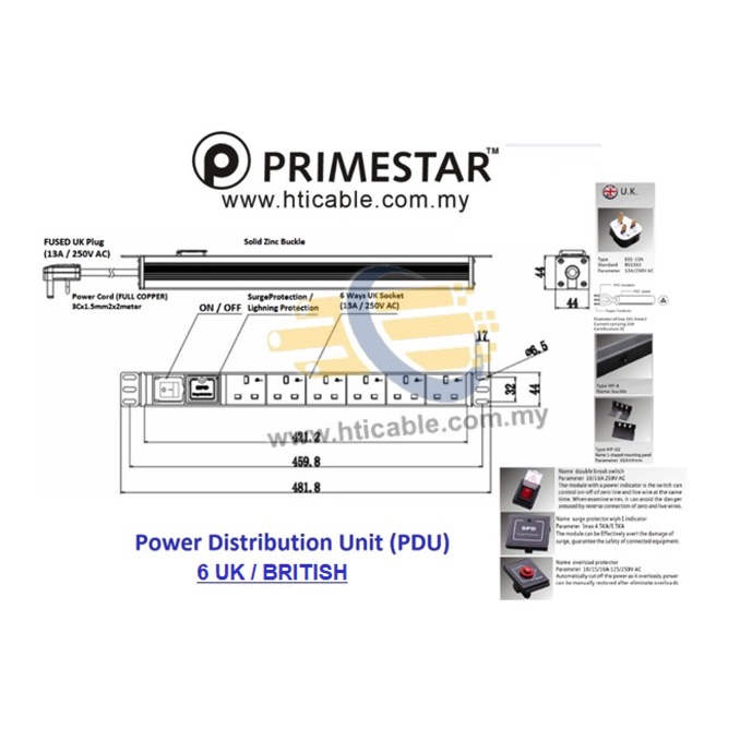 Surge / Lightning Protection 19inch Server Rack PDU 5 / 6 / 10 Gang 13A (Power Distribution Unit)