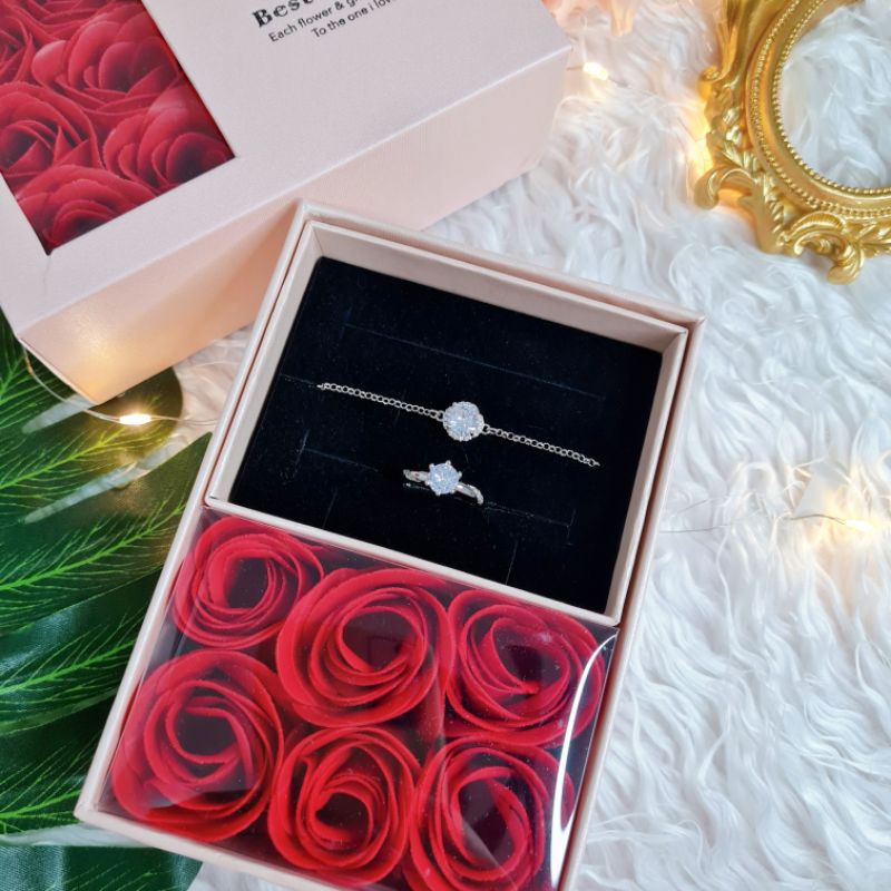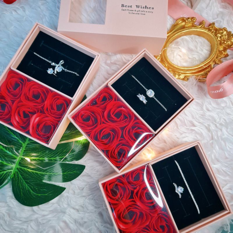Surprise Gift Box Adjustable Rings Box Ring Bracelet Necklace Fashion Accessories Jewelry Birthday Gift for Girl Women