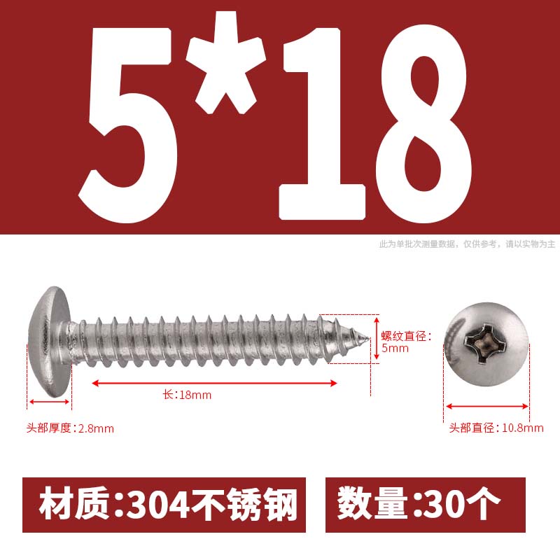 Sus304 Stainless Steel Phillips Large Flat Head Self-Tapping Screw Umbrella Head Self-Tapping Screw M4/M5