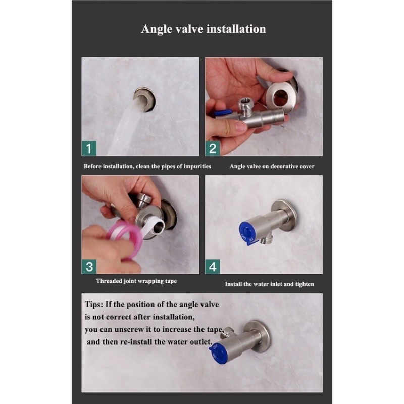 Sus304 Valve Faucet Open close Hot & Cold Faucet Tap Basin Toilet Kitchen Pipe Angle