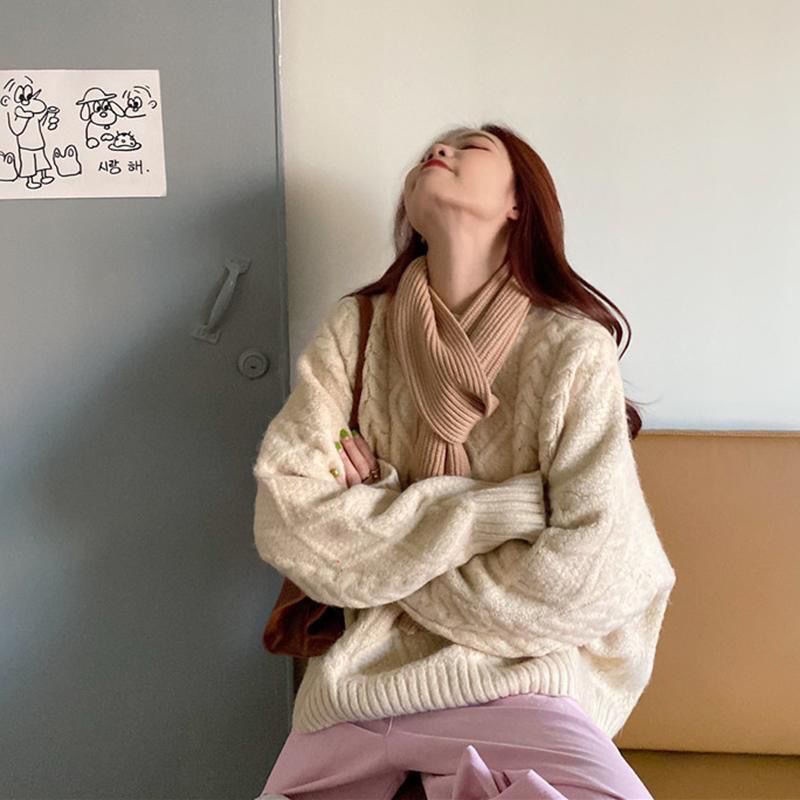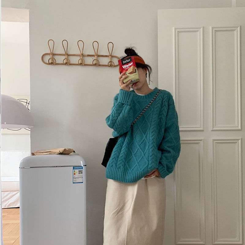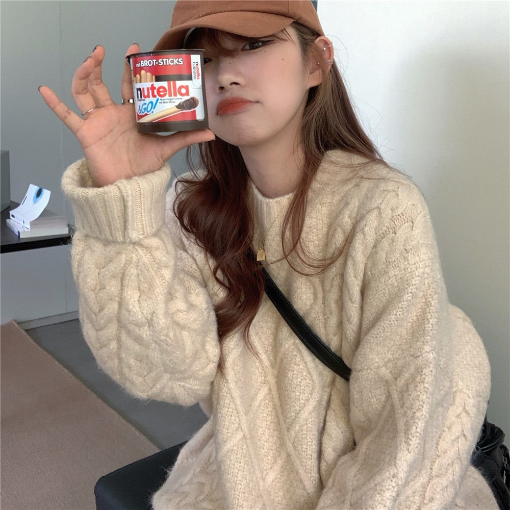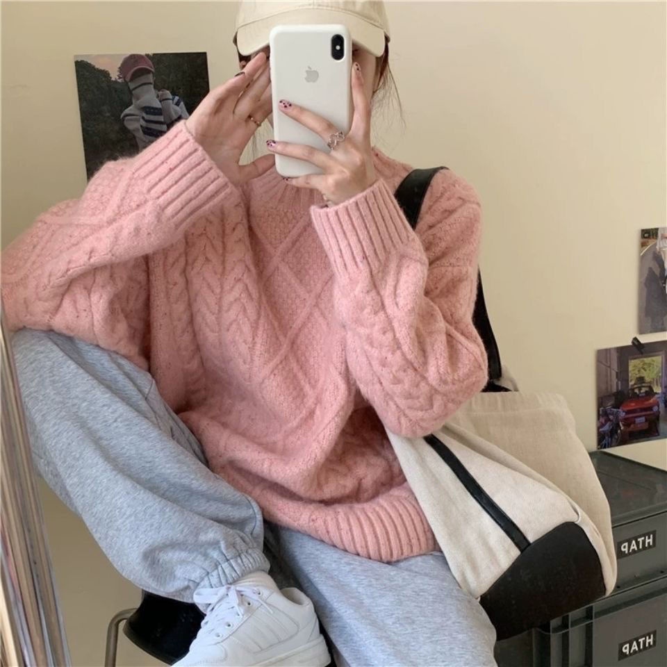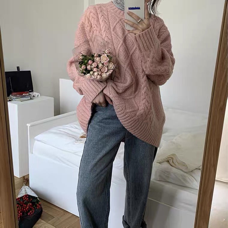 Sweater Women's Loose Retro Sweet Thickened Pullover Twist Sweater