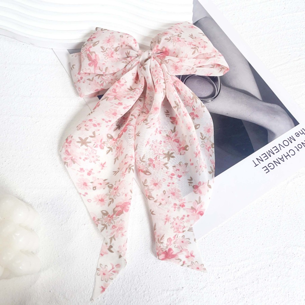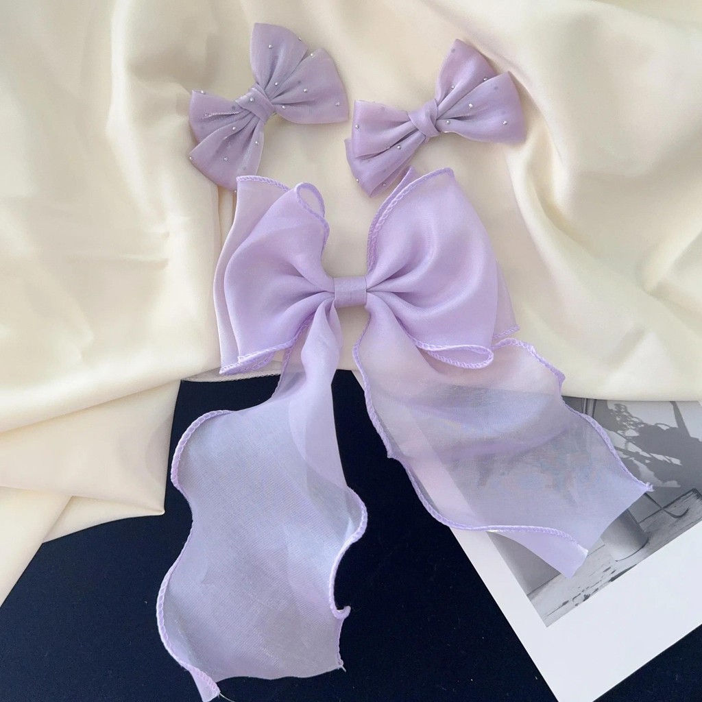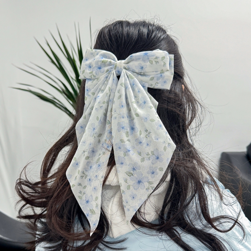 Sweet Chiffon Bow Hair Clips Girls Blue Shining Satin Bowknot Hair Clips Ribbon Grip Ponytail Clip Headwear