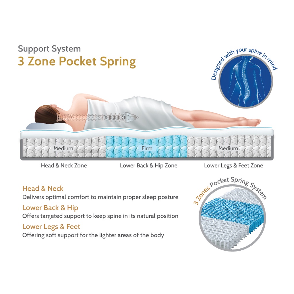 SweetDream Legend Bronze SS Mattress 3 Zone Pocket Spring (13")