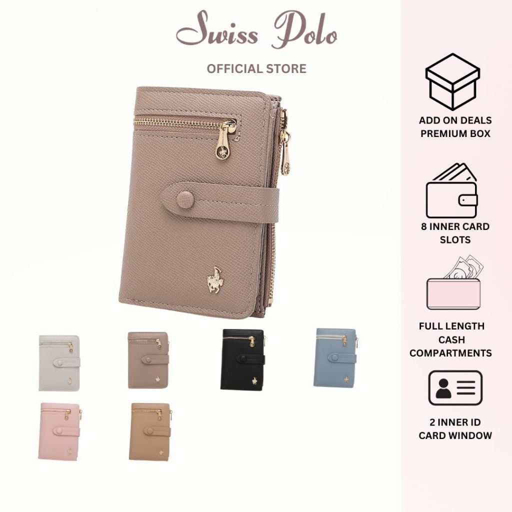 Swiss Polo Ladies PU Leather BIfold Zip Pocket Purse - Multi Color SLP 37