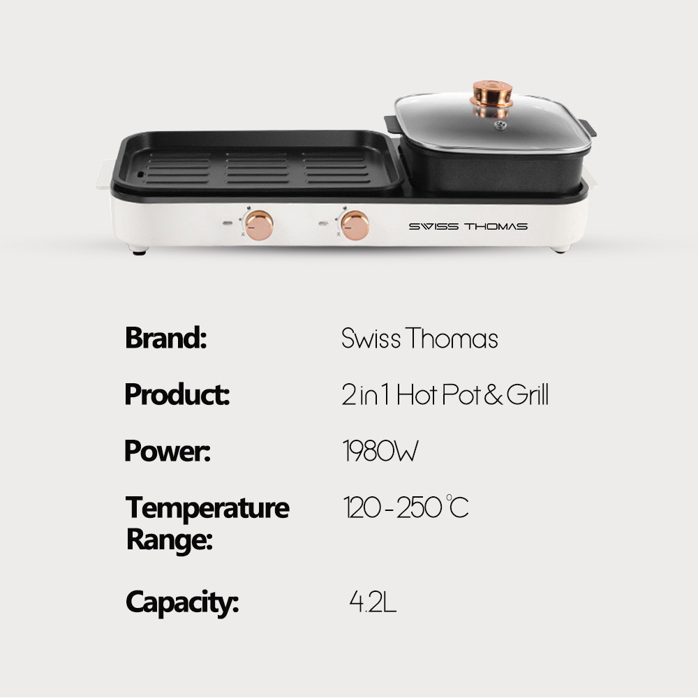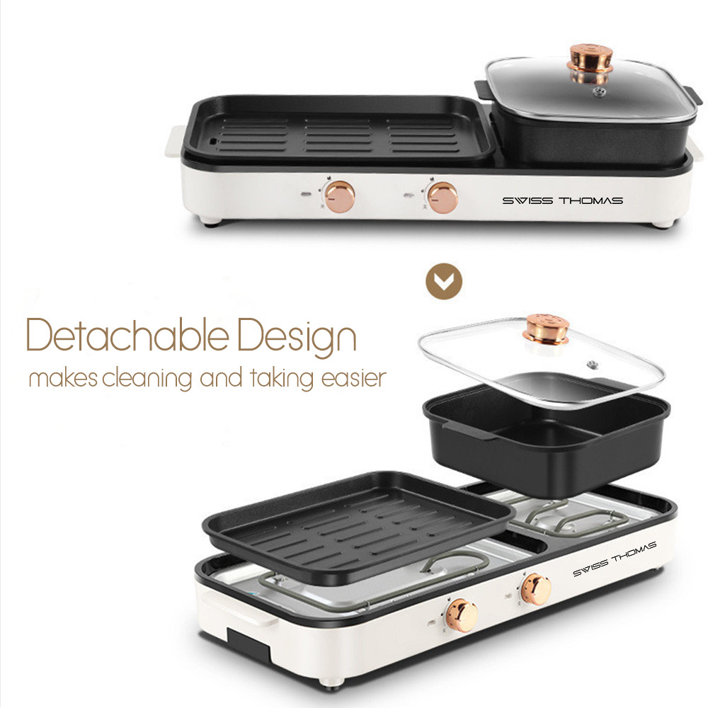 SwissThomas (68x28cm) Barbeque BBQ Steamboat Pot BBQ Grill Plate Detachable Electric Marble Stone Mookata Pot