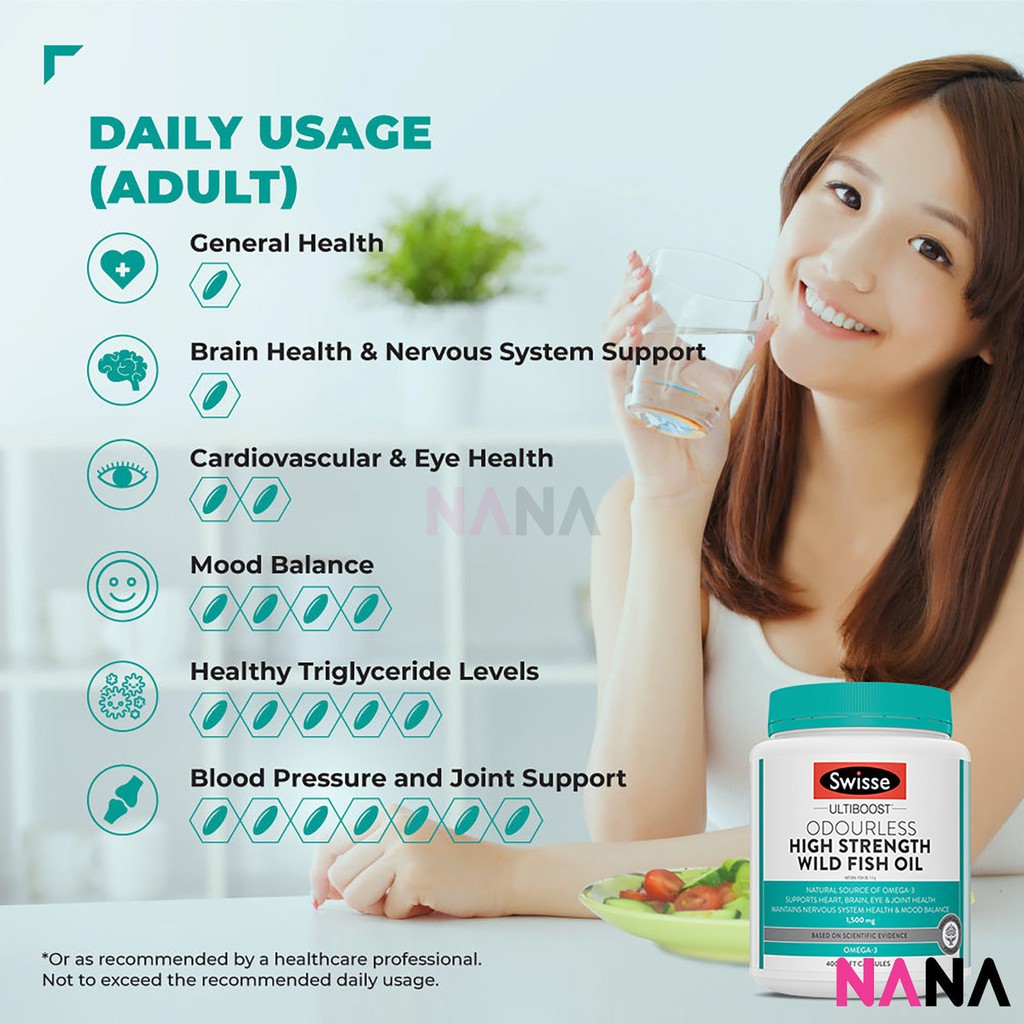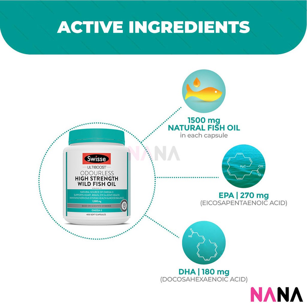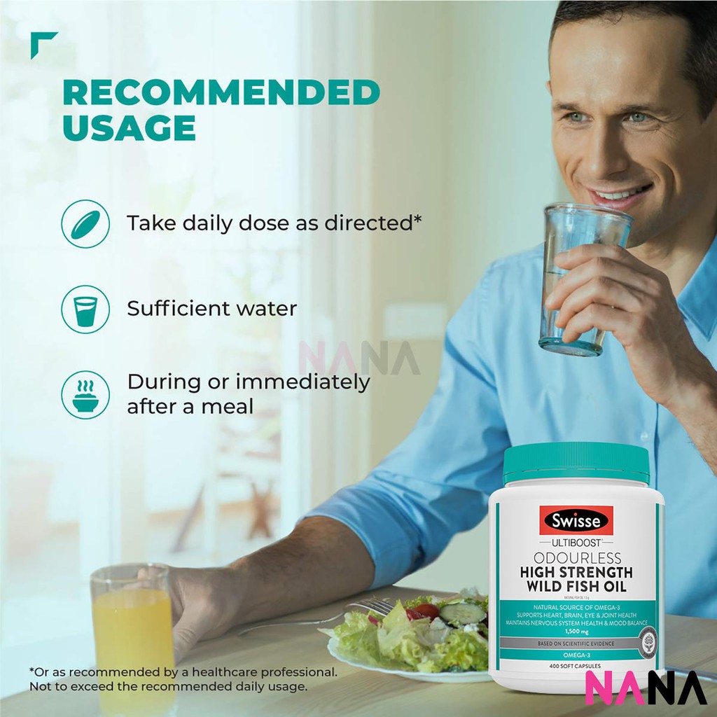 Swisse Ultiboost Odourless High Strength Wild Fish Oil 1500mg 400 Capsules (EXP:02 2027)