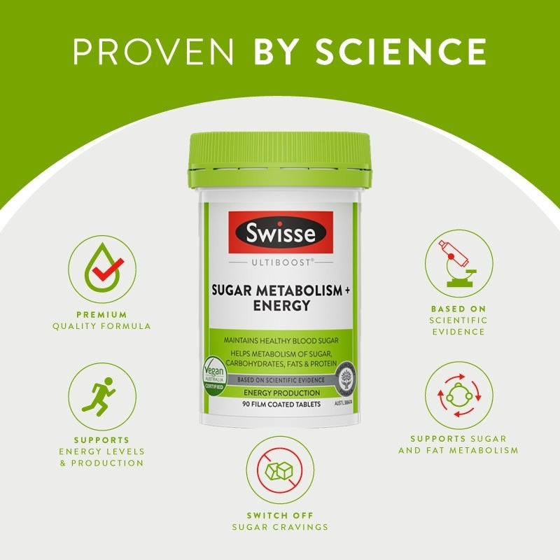 Swisse Ultiboost Sugar Metabolism+ Energy 90 Film Coated Tablets (EXP:11 2026)