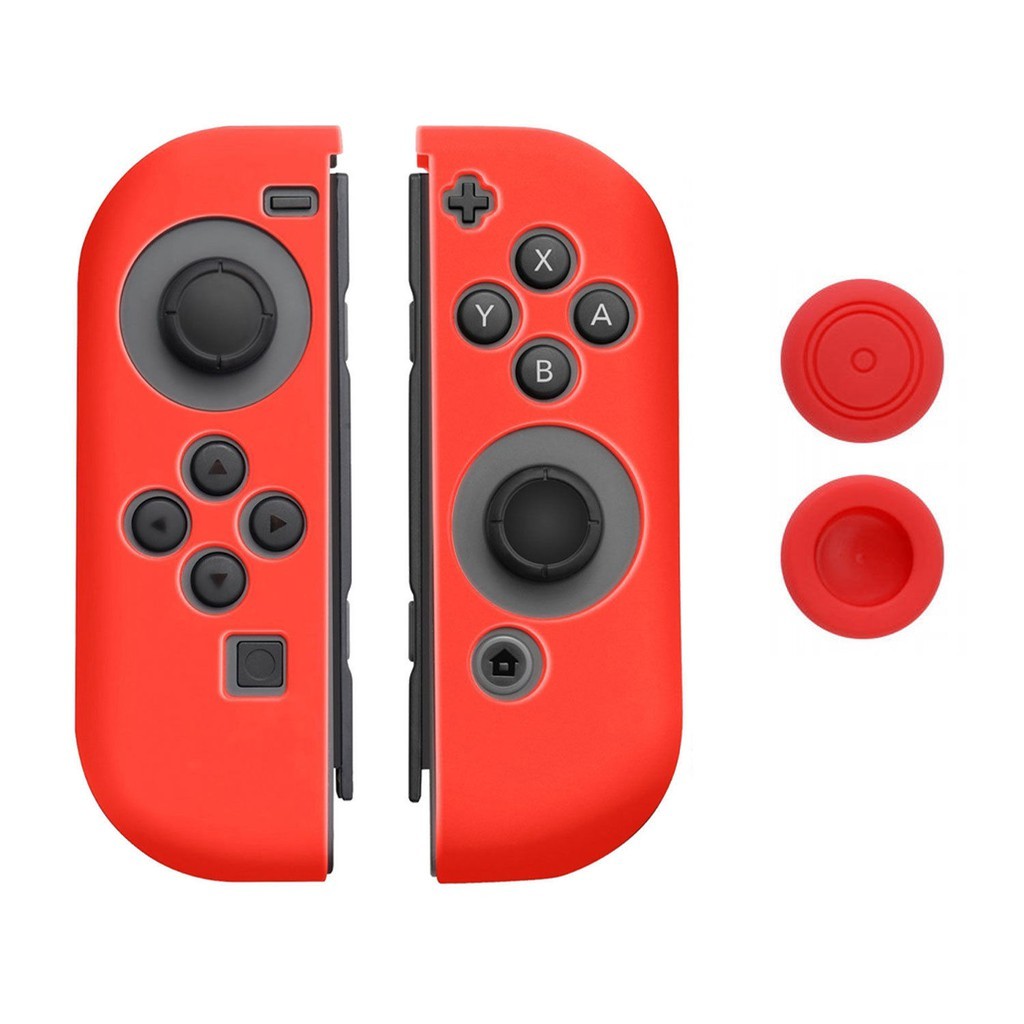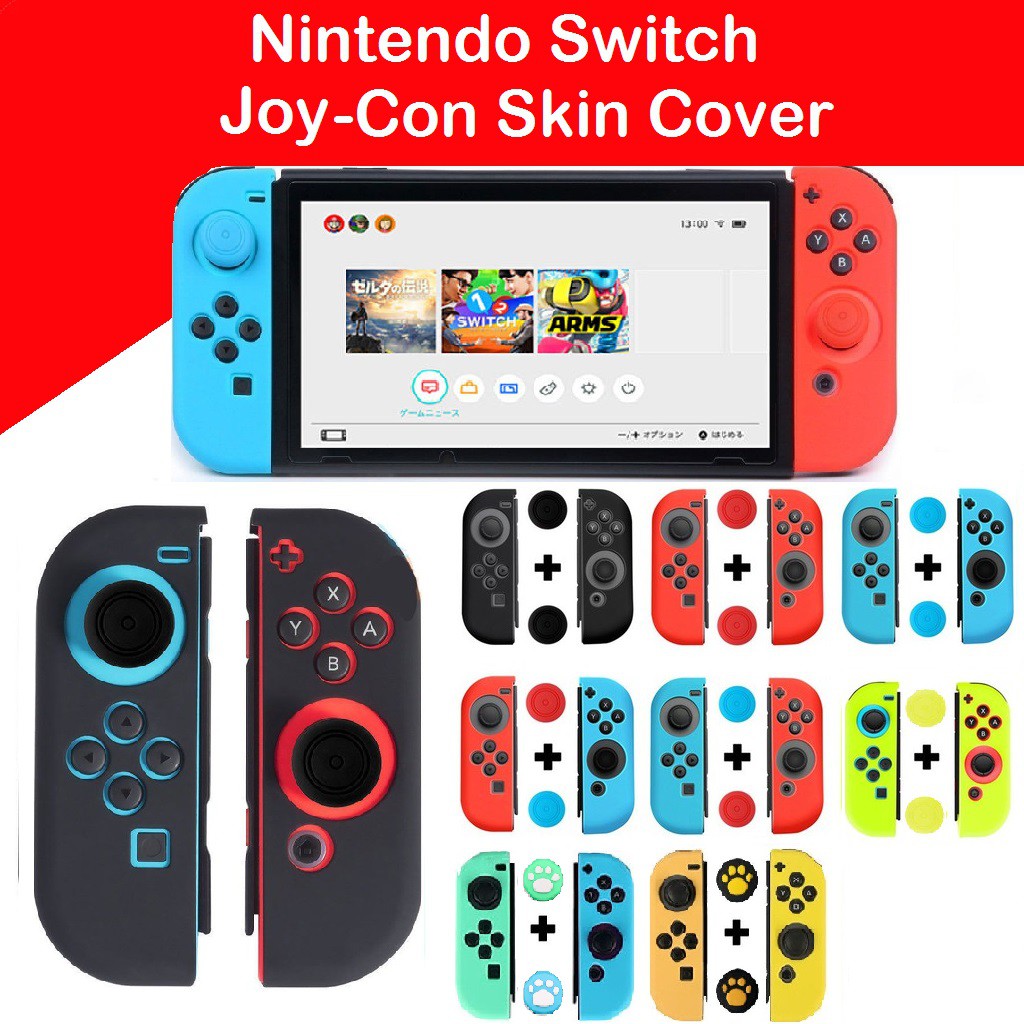 Switch Silicone Rubber Skin Case Cover + Grip Caps For Nintendo Switch/OLED JoyCon Controller
