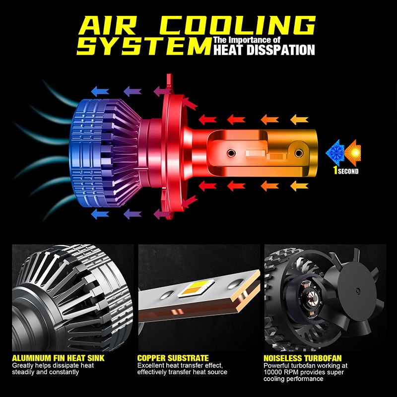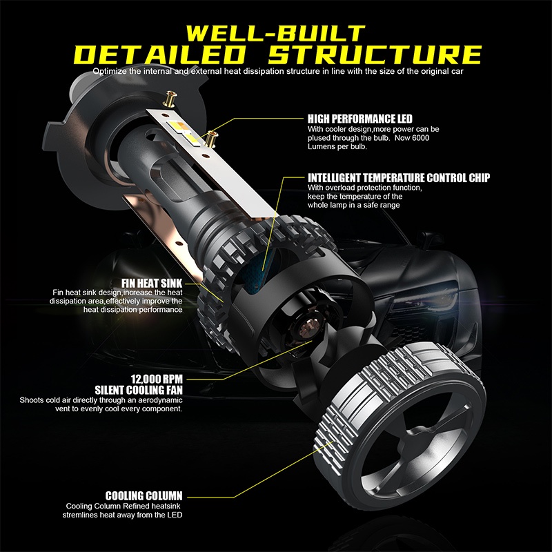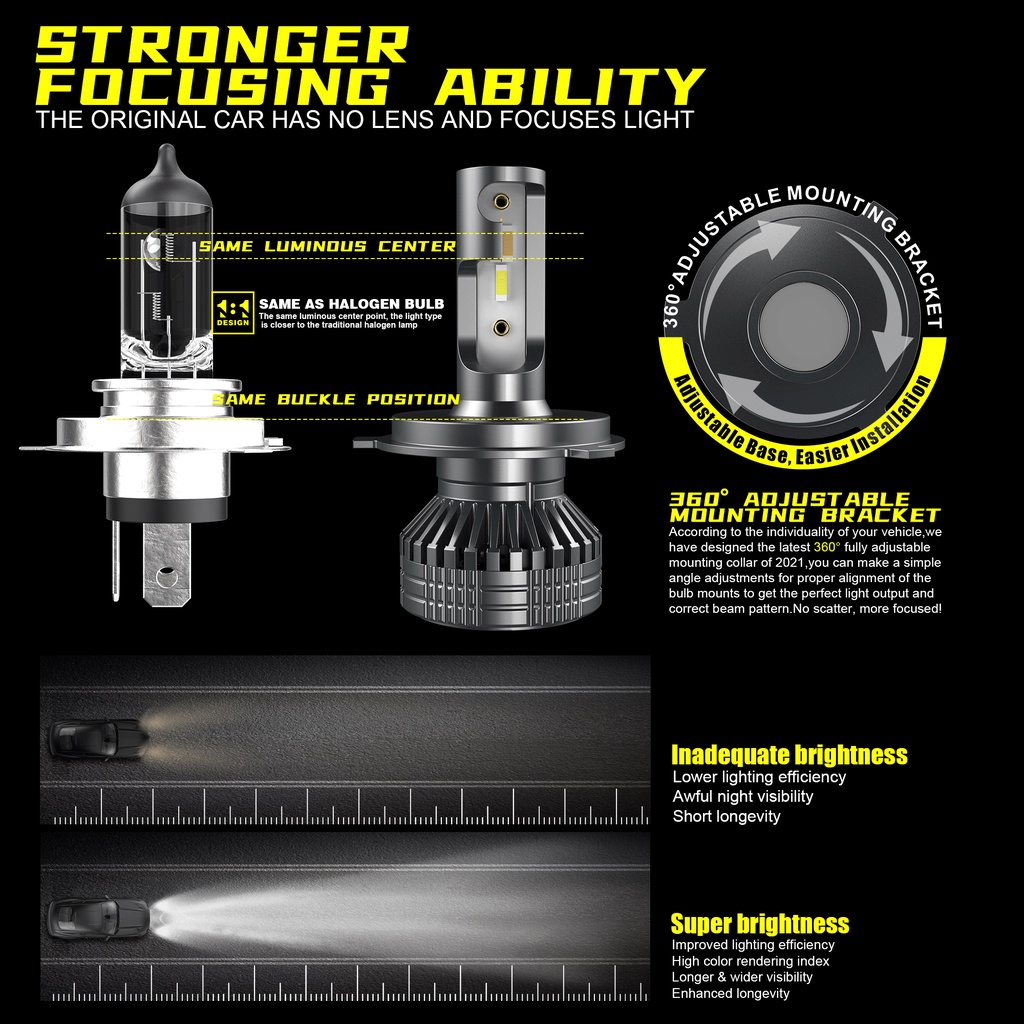 Switchable three-color LED headlight H4 H7 H11 3000K / 4300K / 6000K car bulb 60W 12000LM pair