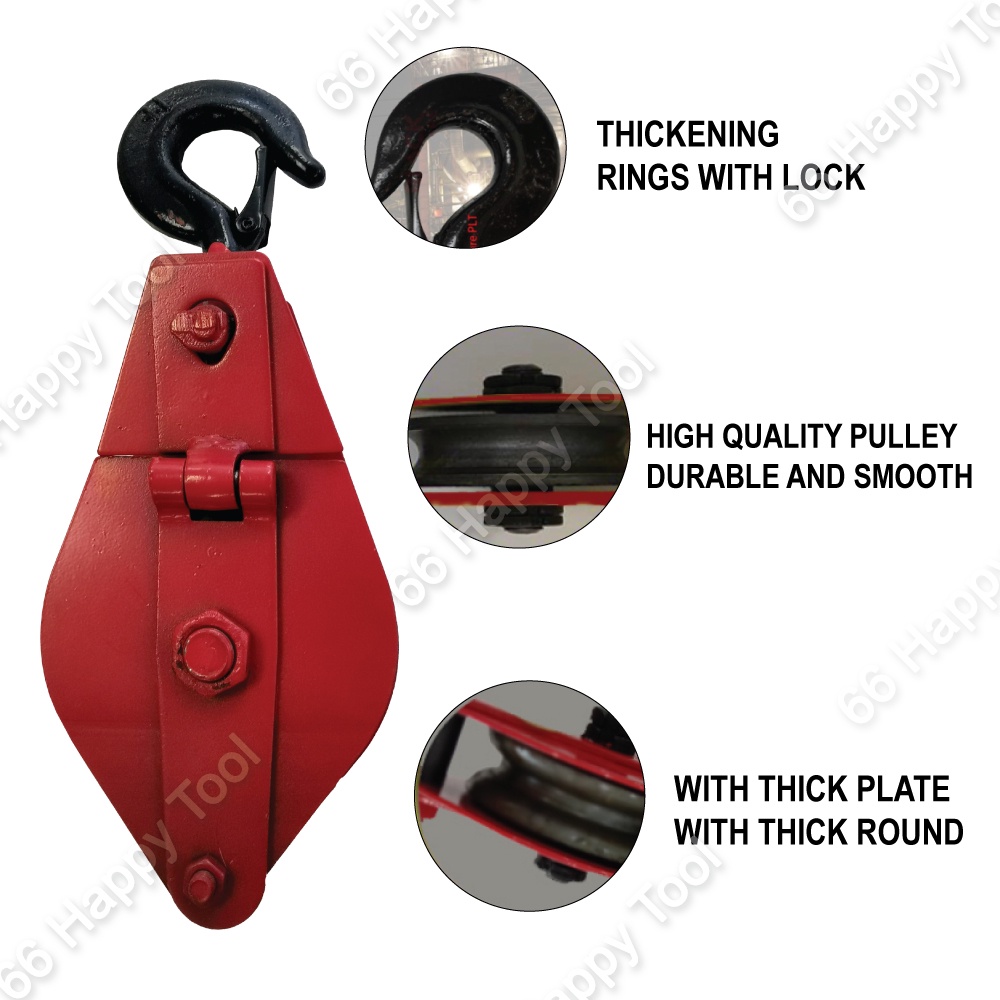 Swivel Single Rope Pulley Lifting Hook With Latch 0.5T/1T/2T Car Pulley Roller Wheel Block Hanger Hook Bearing Tool