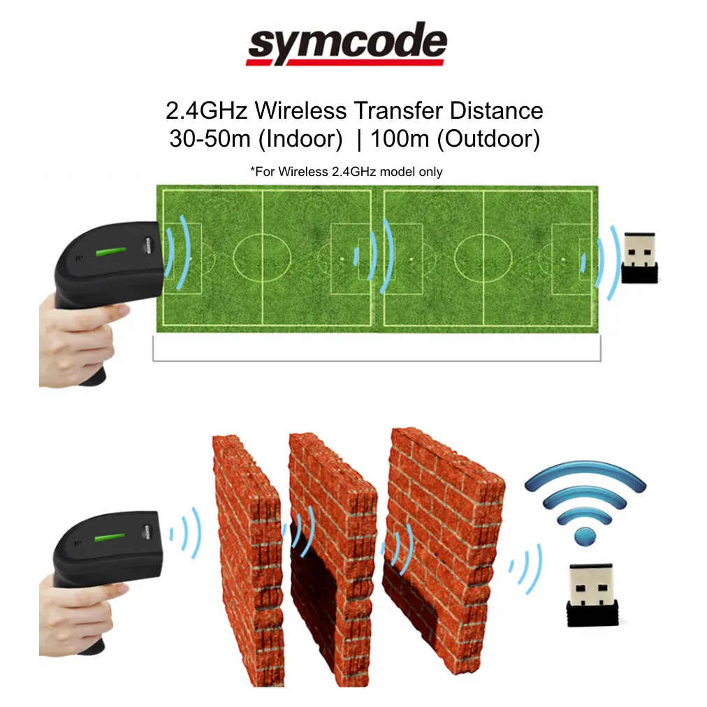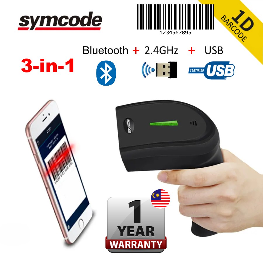 Symcode MJ1400 Bluetooth/ 2.4G Wireless/ USB Wired 1D 2D QR Code Barcode Scanner