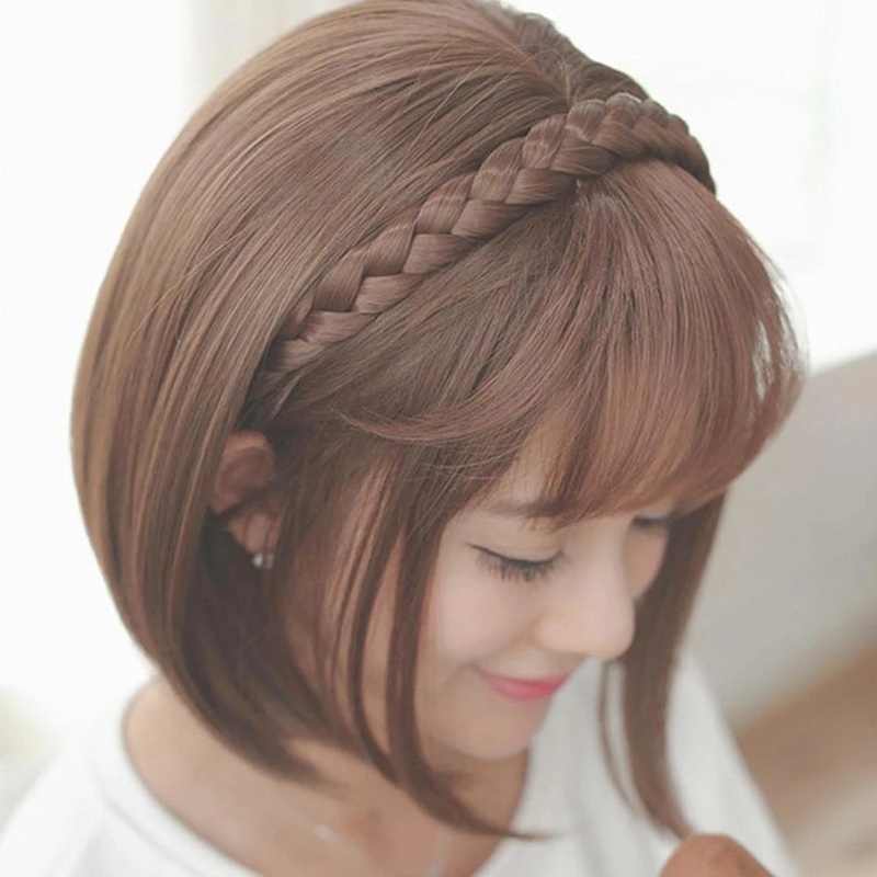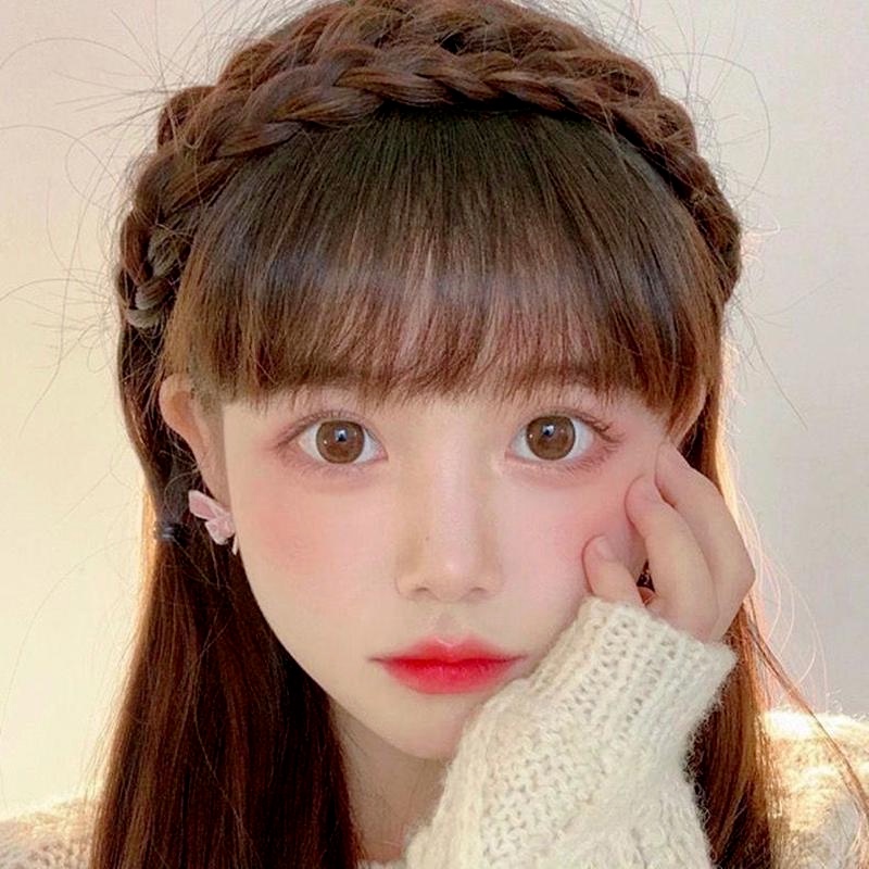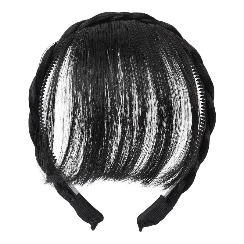 Synthetic Fake Bangs Hair Neat Fringe Bands with Double Row Braids Headband Heat Resistant Bangs In Hair Extensions Hairpieces