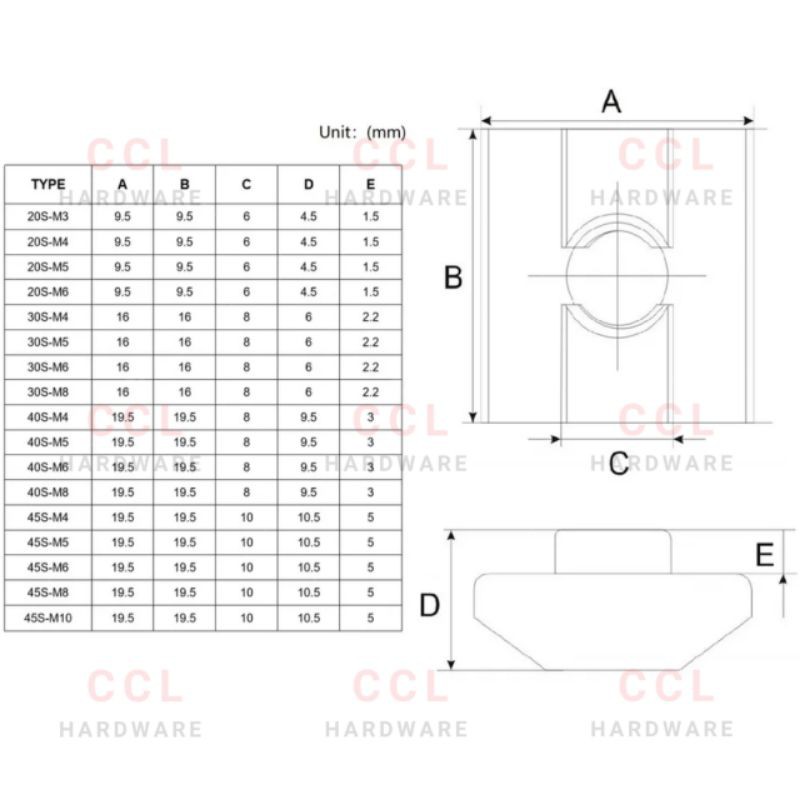T Block Square Nut Sliding Hammer Nut For Fastener Aluminum Profile EU 2020 3030 4040 Series