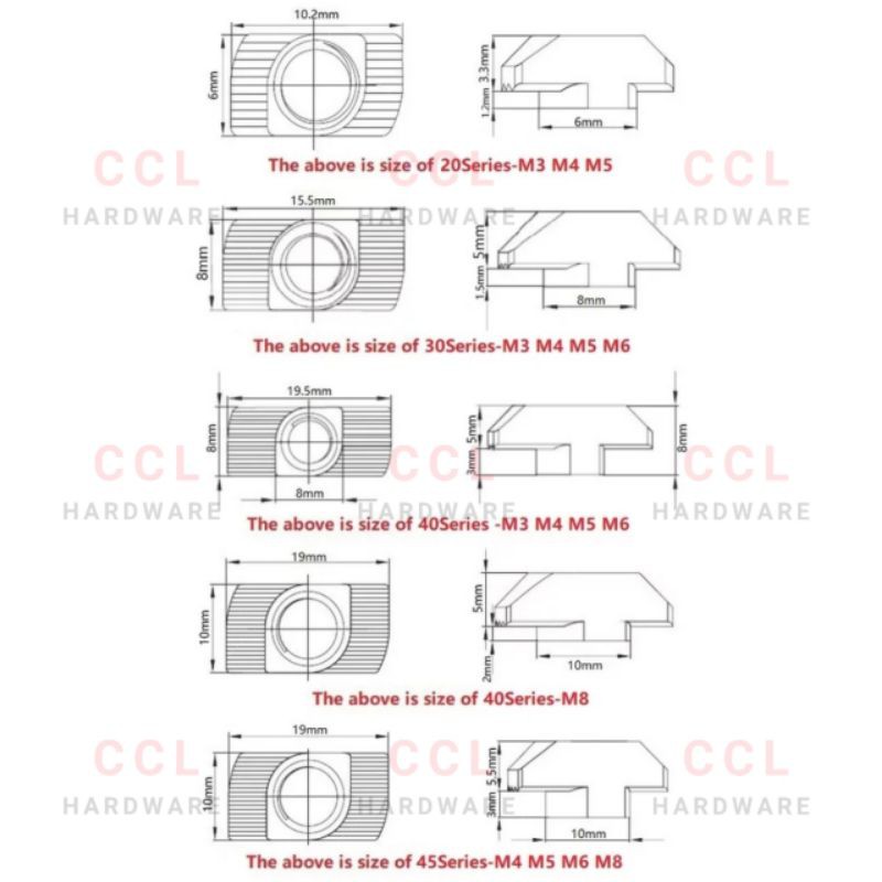 T Nut Rhombus Hammer T Nut Hammer Head Fasten Nut Connector T For EU 2020 3030 4040 Series Aluminium Profile
