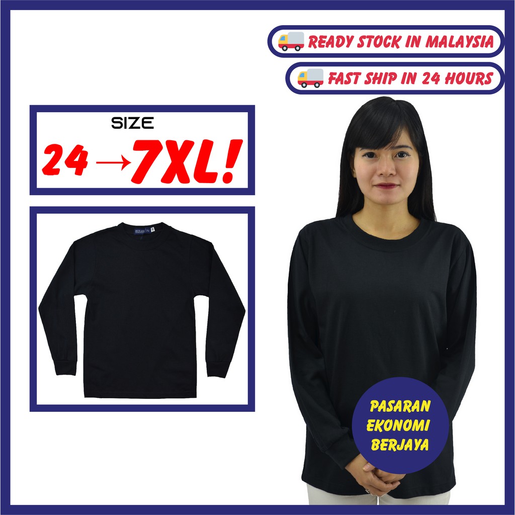 T-SHIRT BULAT LENGAN PANJANG HITAM/ ROUND NECK 100% COTTON SHIRT/ HIGH QUALITY BLACK T-SHIRT/ PLAIN TEE/ TSHIRT HITAM