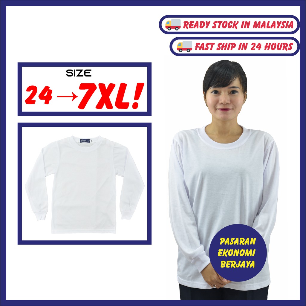 T-SHIRT BULAT LENGAN PANJANG PUTIH/ ROUND NECK 100% COTTON SHIRT/ HIGH QUALITY WHITE T-SHIRT/ PLAIN TEE/ TSHIRT PUTIH