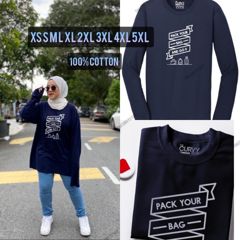 T-SHIRT LENGAN PANJANG LONGSLEEVES 100% COTTON XS S M L XL 2XL 3XL 4XL 5XL PLUSSIZE PACK BAG MUSLIMAH SAIZ BESAR BAJU