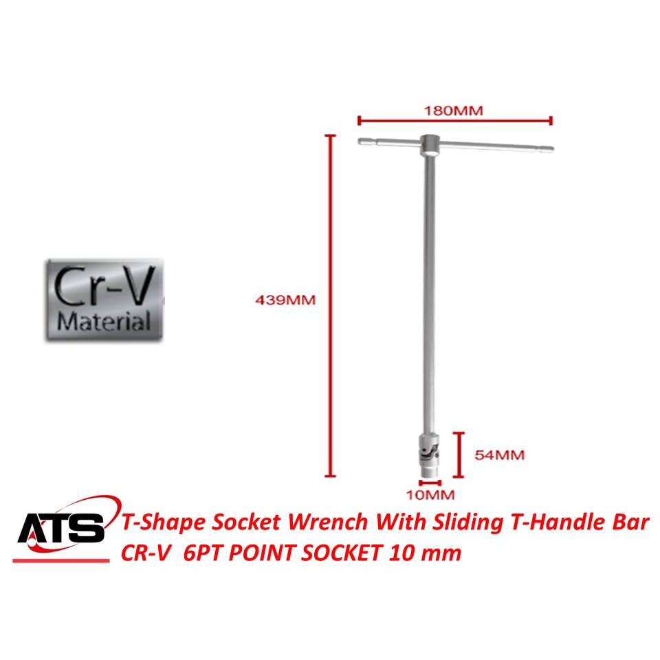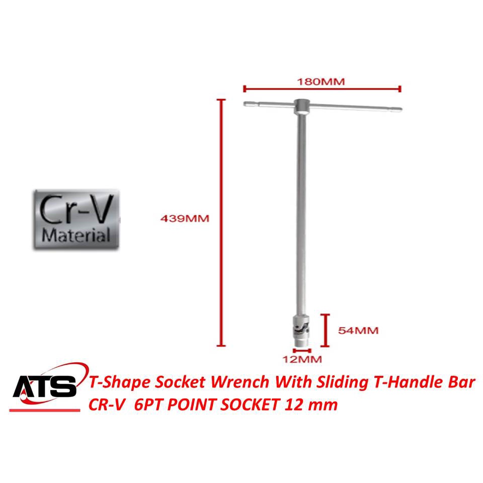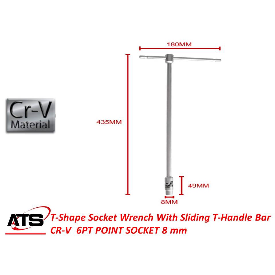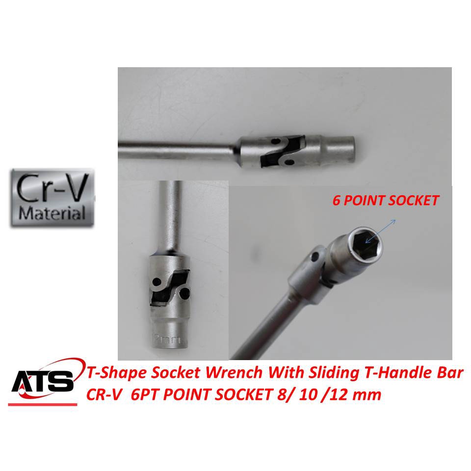 T-Shape Socket Wrench With Sliding T-Handle Bar CR-V 6PT POINT SOCKET 8/ 10 /12 mm