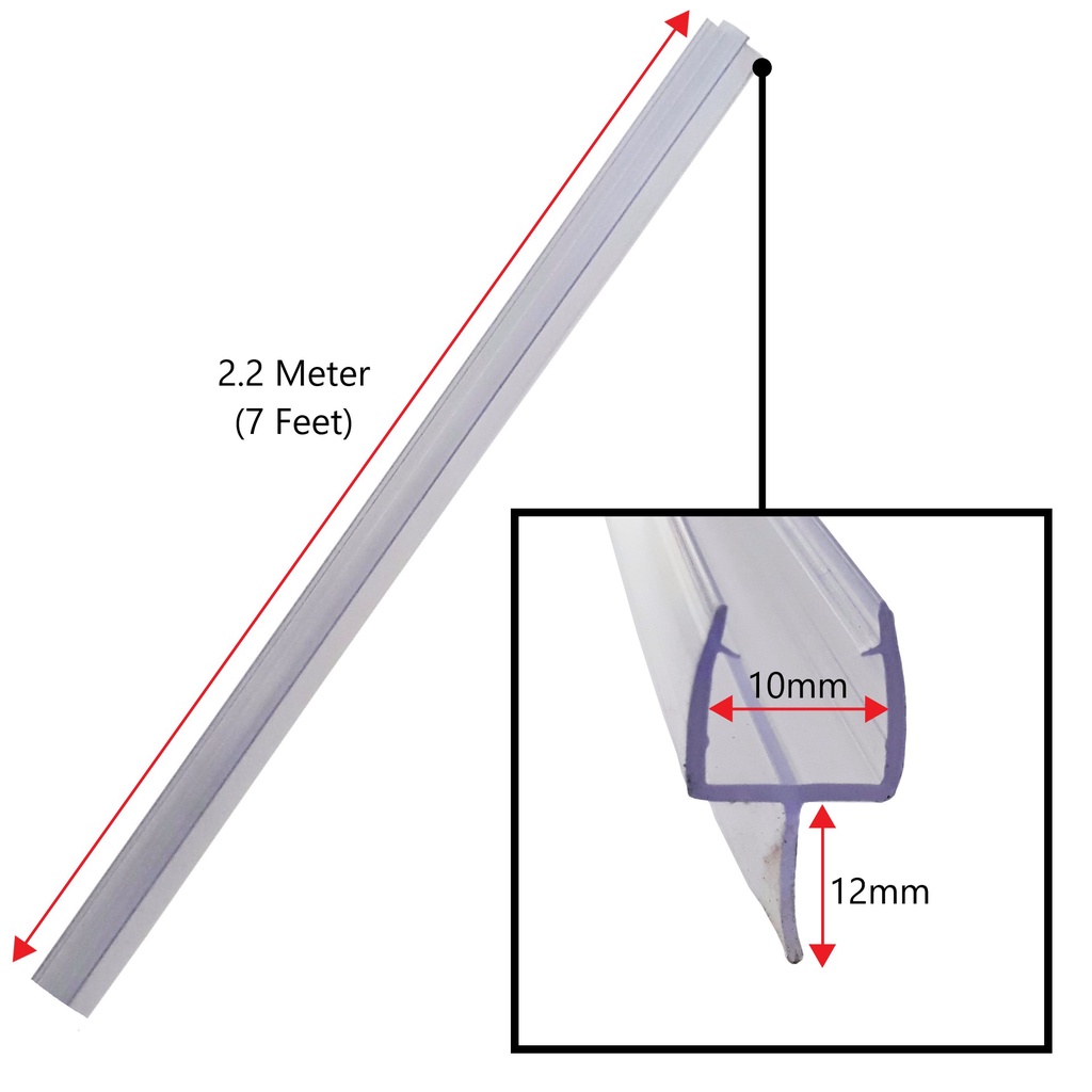 T-Type Bathroom Shower Enclosure Transparent Glass Door Seal Rubber 2.2m (7ft) For Shower Screen Glass 10mm Thick