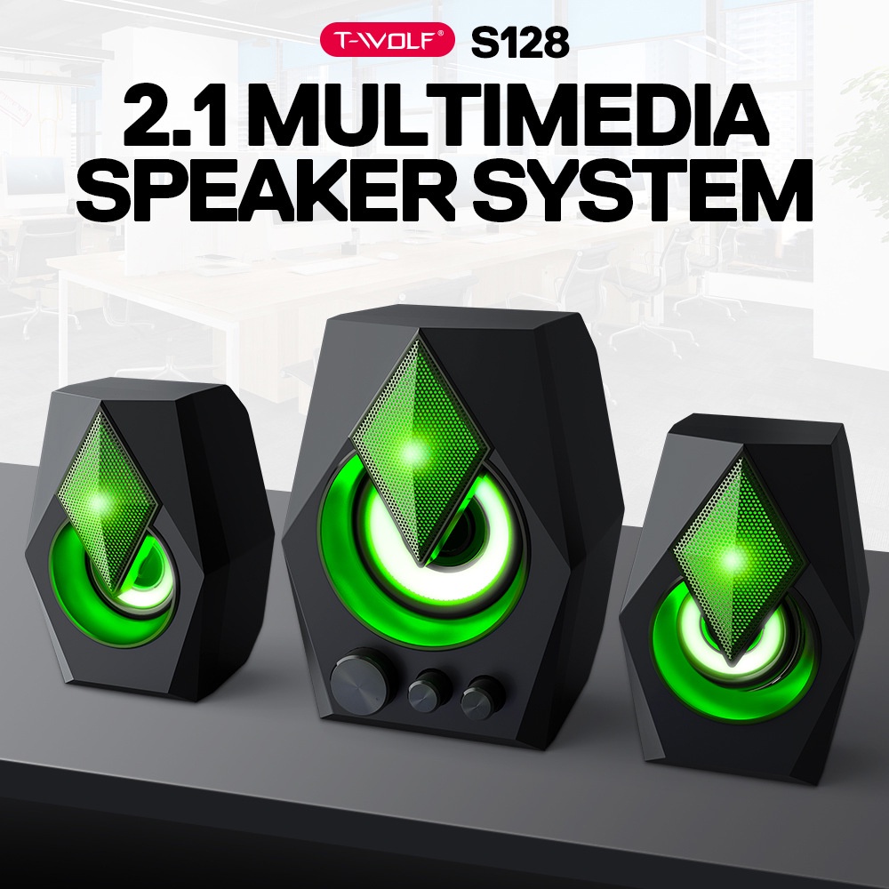 T-WOLF S128 2.1 USB SPEAKER WITH RGB LED LIGHT + SUBWOOFER SPEAKER PC NOTEBOOK SPEAKER