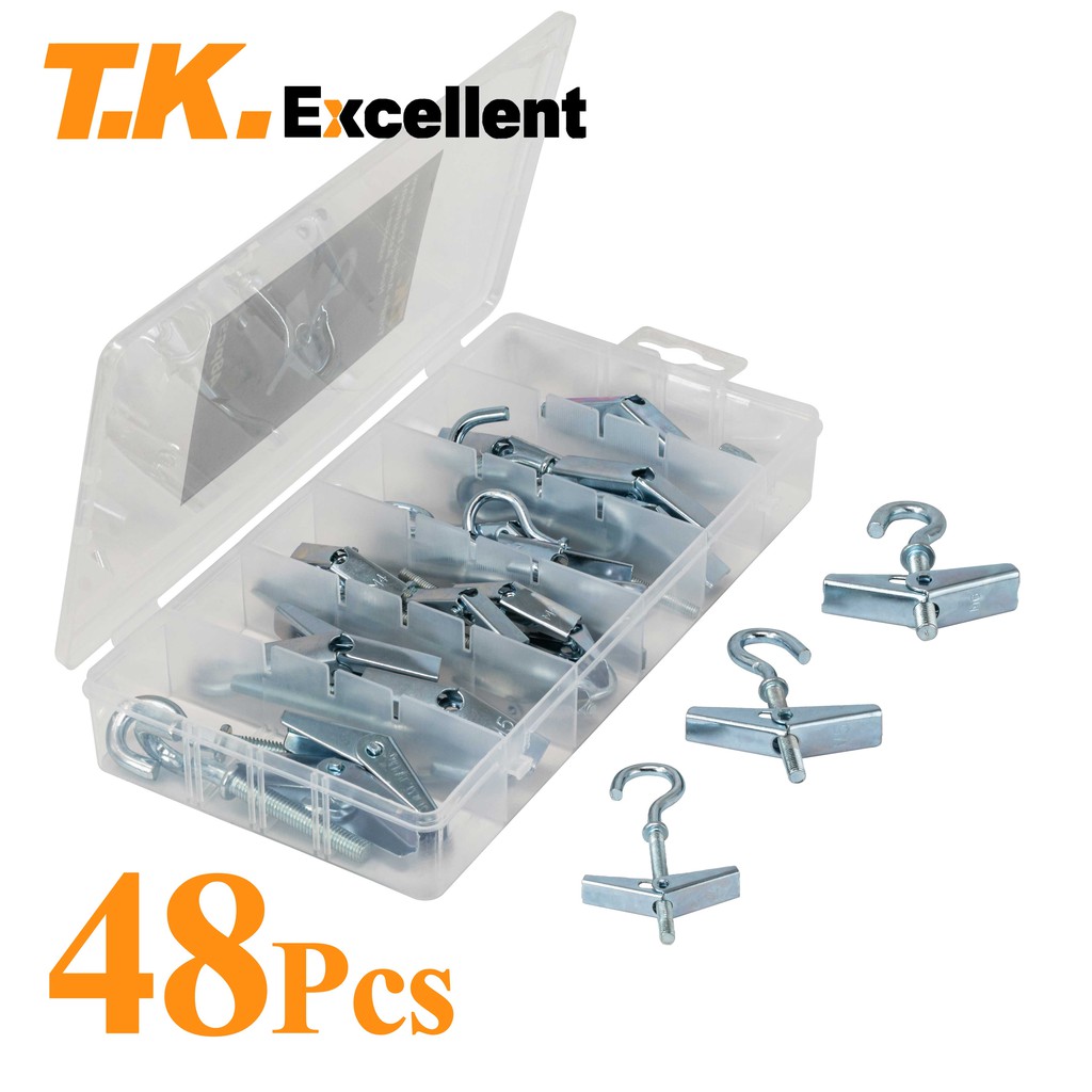 T.K.Excellent Pack of 24 spring Ceiling Hook,Spring Toggle anchor bolt Wings for Ceiling Installation Cavity Wall Fixing Ceiling Hook,48pcs