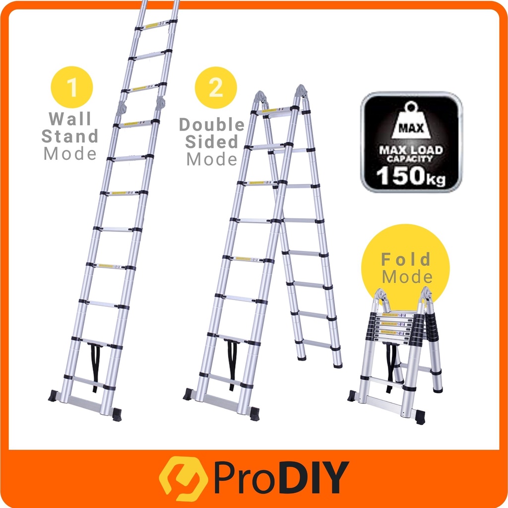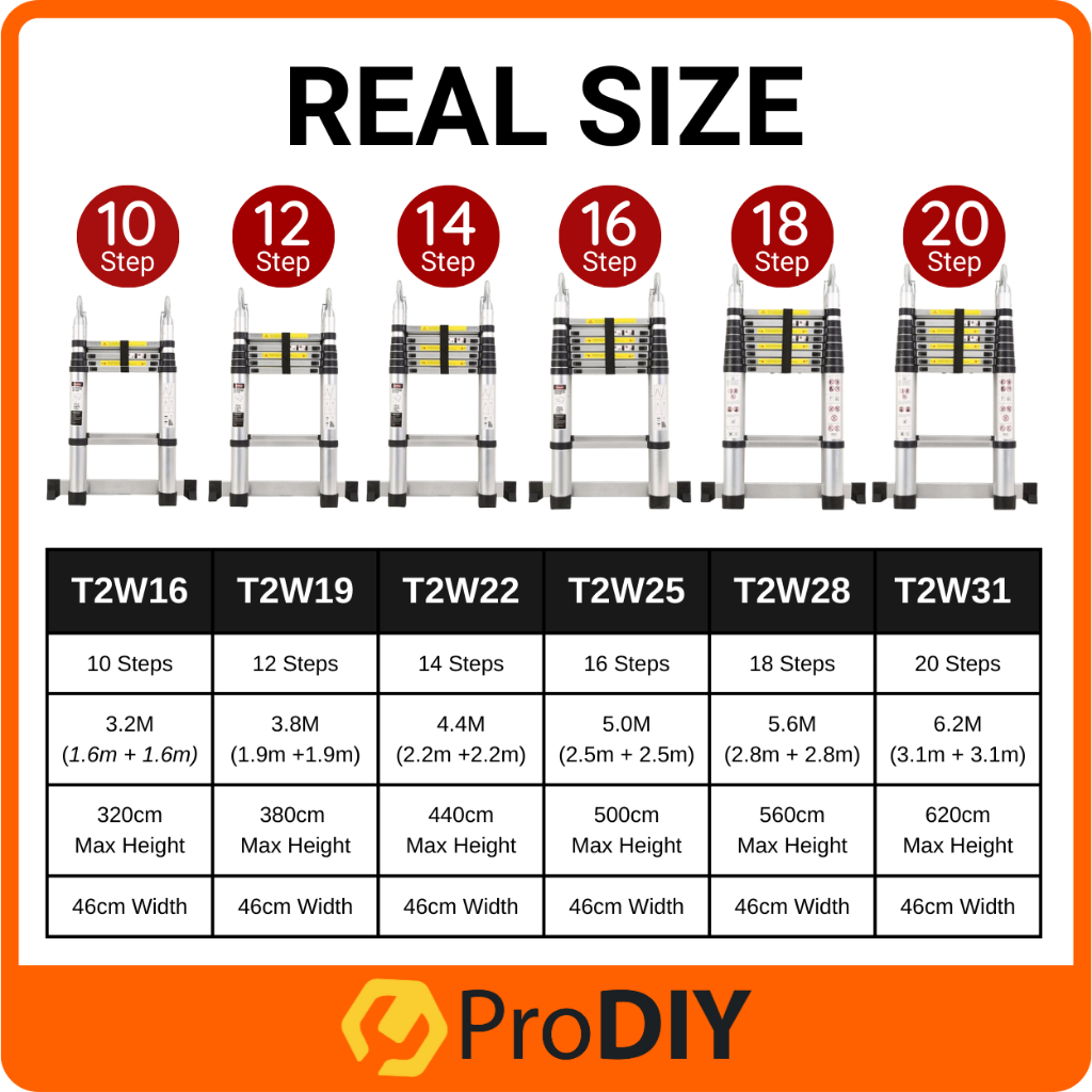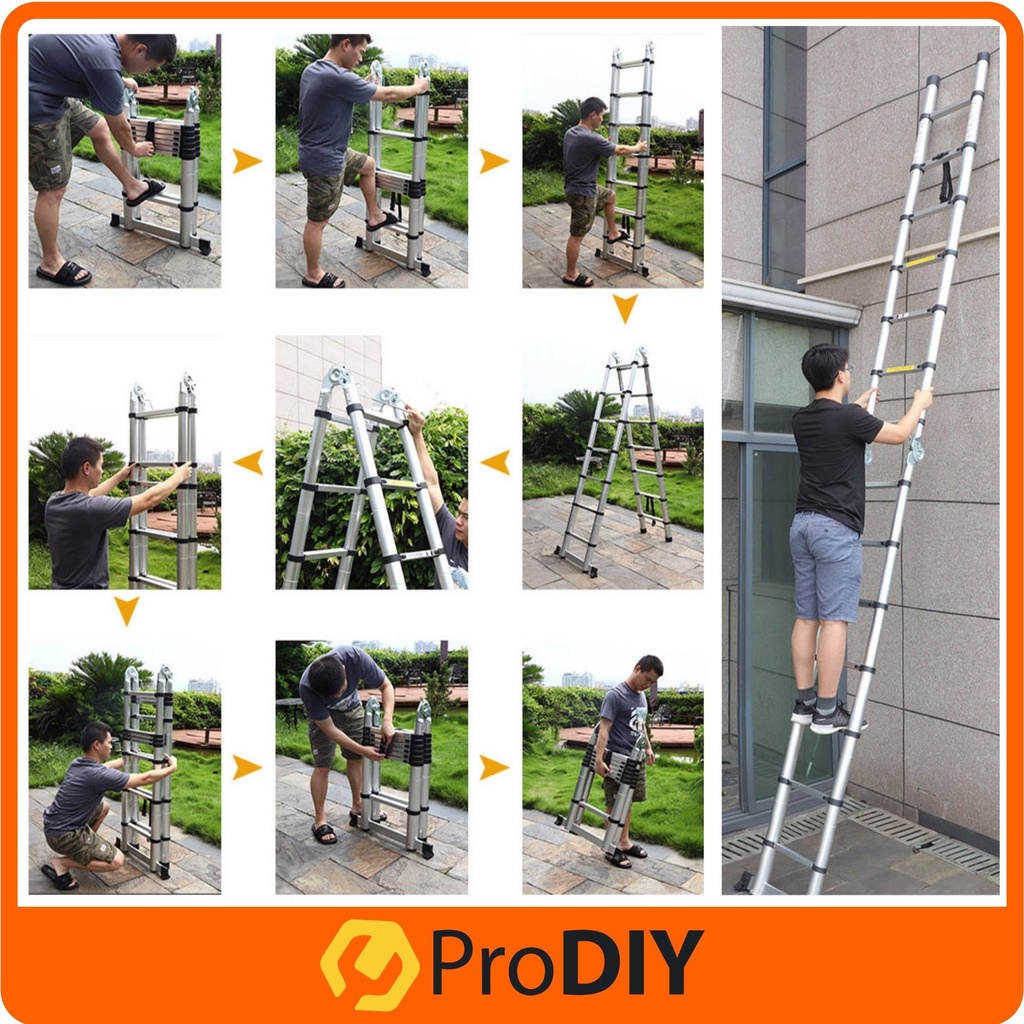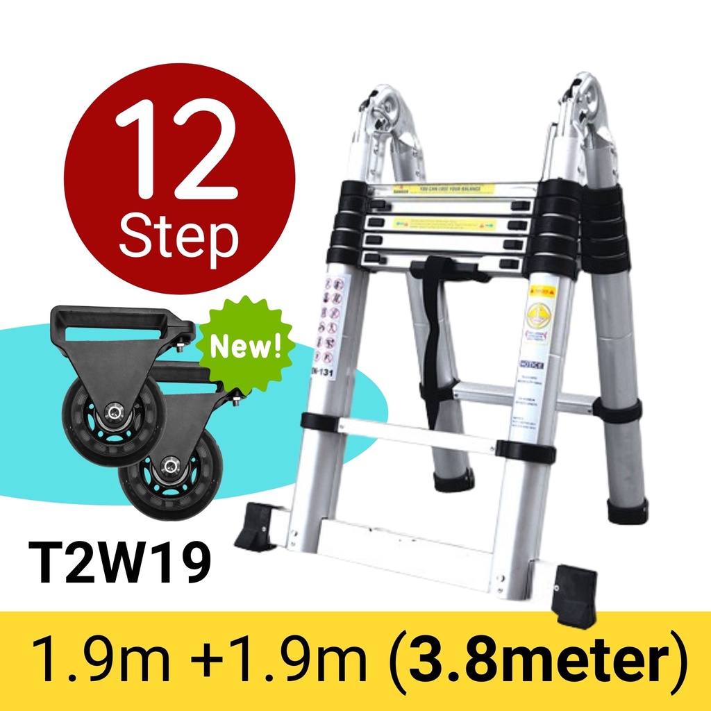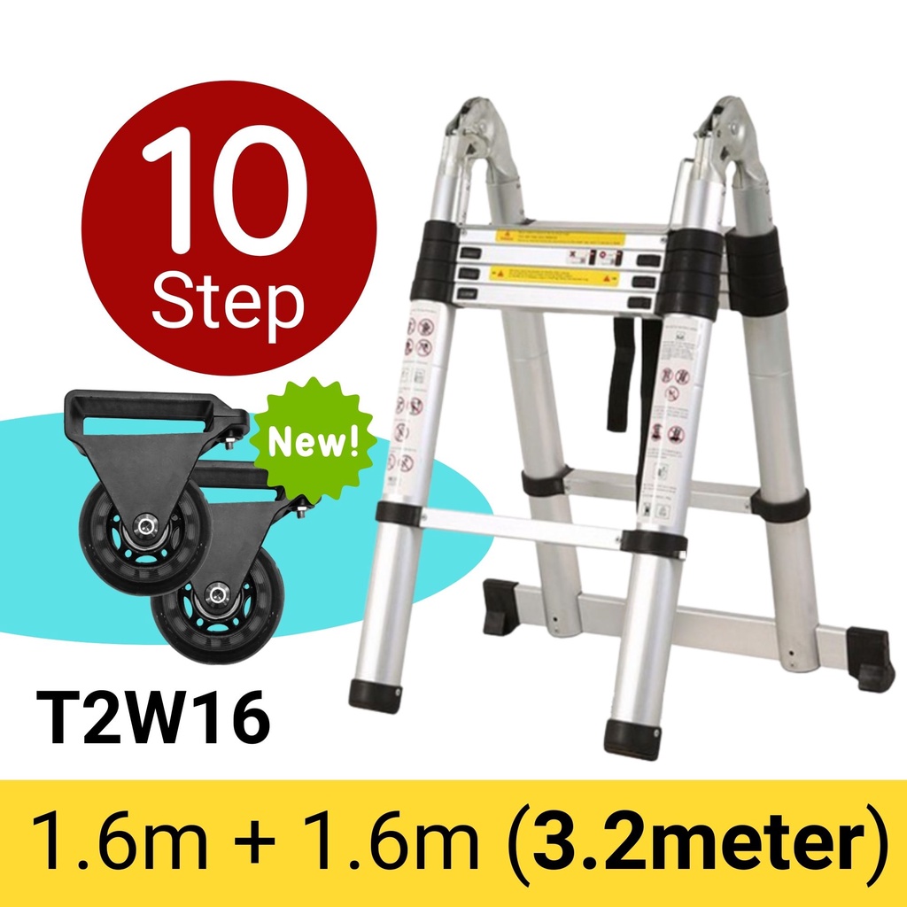 T2W LADDER Multipurpose Telescopic Extendable Aluminium Ladder Tangga Lipat 伸缩梯 | 梯子 ( 10 / 12 / 14 Step )