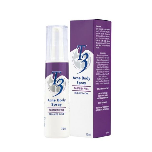 T3 ACNE BODY SPRAY PARABEN FREE REDUCES ACNE 75ml