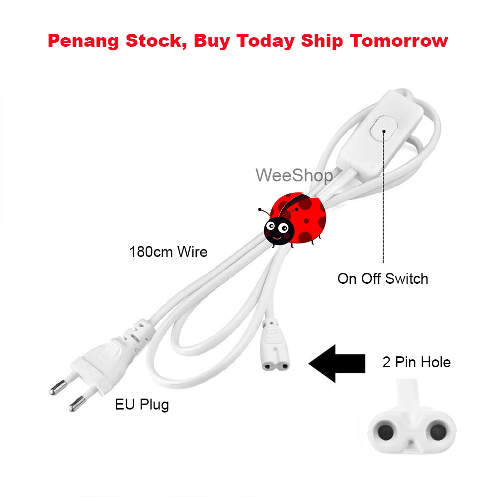 T4 T5 T8 LED Tube Light 2 Pin Hole Connector Wire 1.8m On Off Plug Cable