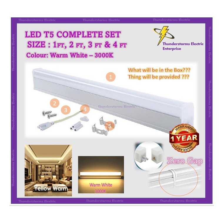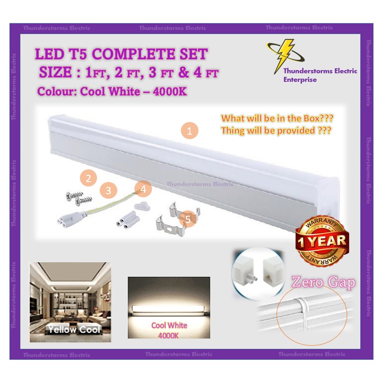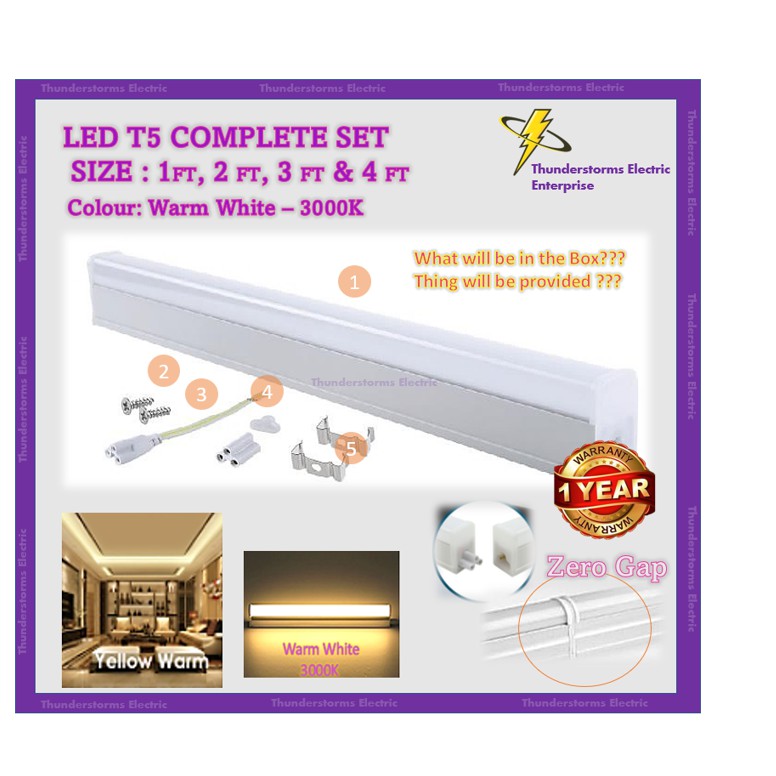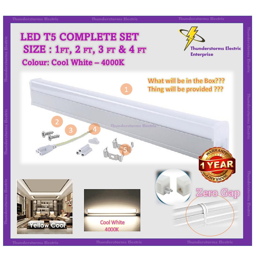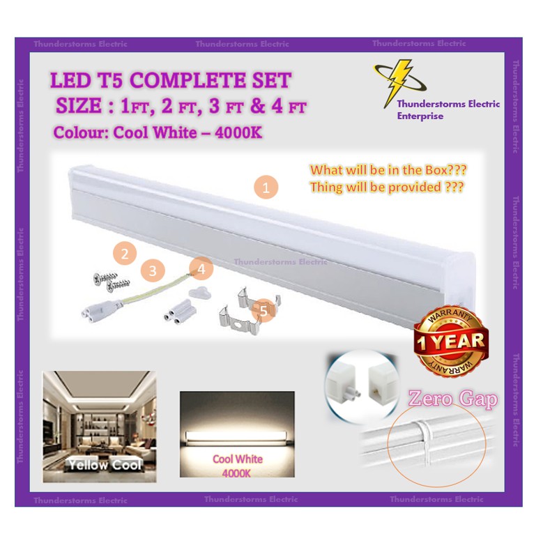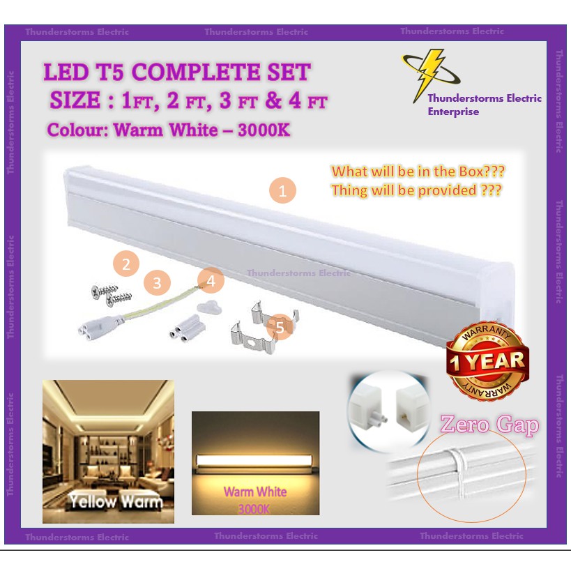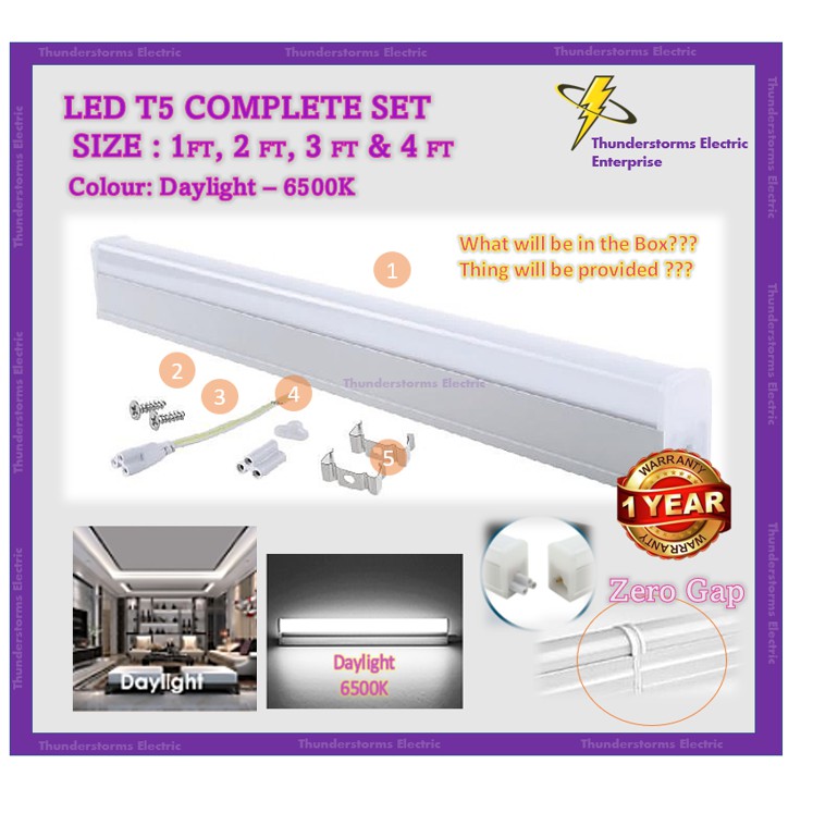 T5 LED TUBE LIGHT (Daylight/ Warm White & Cool White) / 4FT, 3FT, 2FT, 1FT & T5 Corner Join Connector