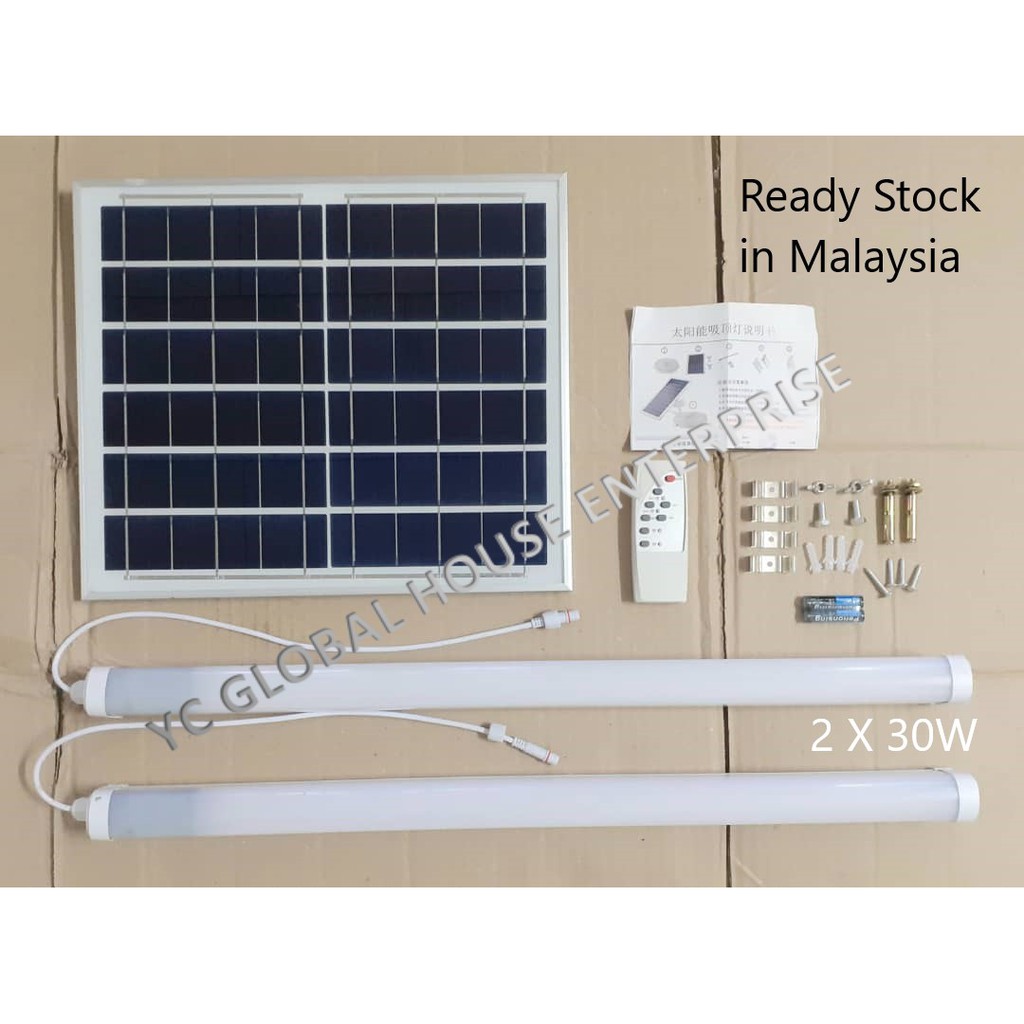 T8 Solar Fluorescent Light 30W / 50W one panel to 2 lights (Ready Stock)