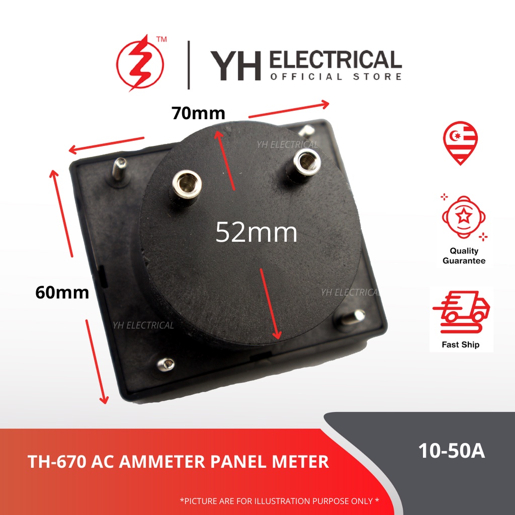 TA HSING 10-50A AC Ammeter Panel AMP Current Meter (MADE IN TAIWAN) (TH-670-A)