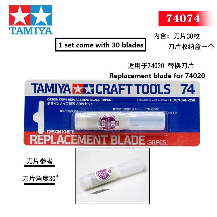 TAMIYA Craft Tools - 74020 Narrow Blade Edge Design Knife / 74074 Replacement Blade(30PCS) for Plastic Modeling Tool