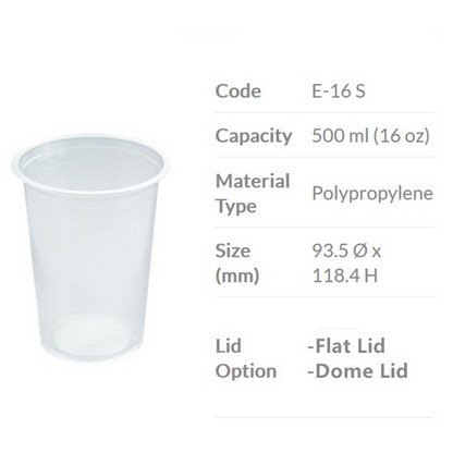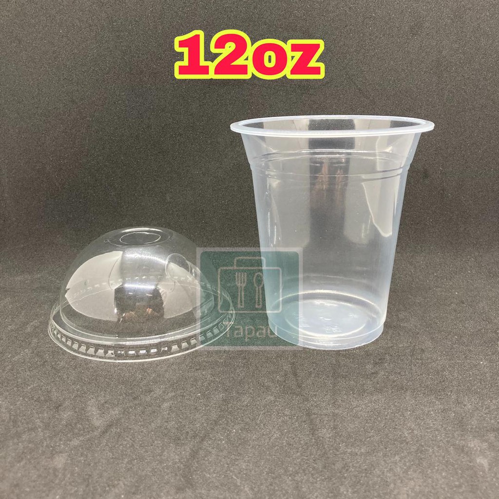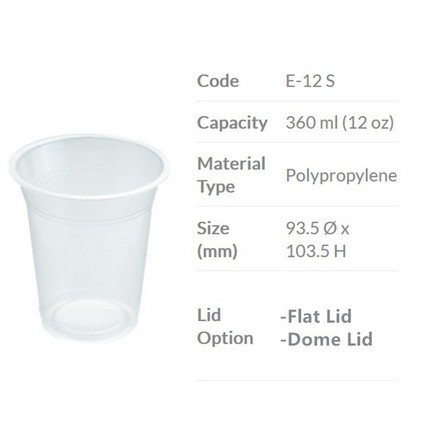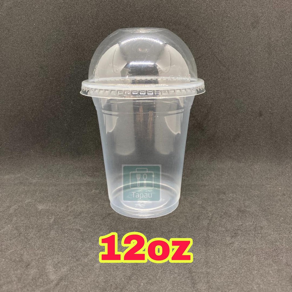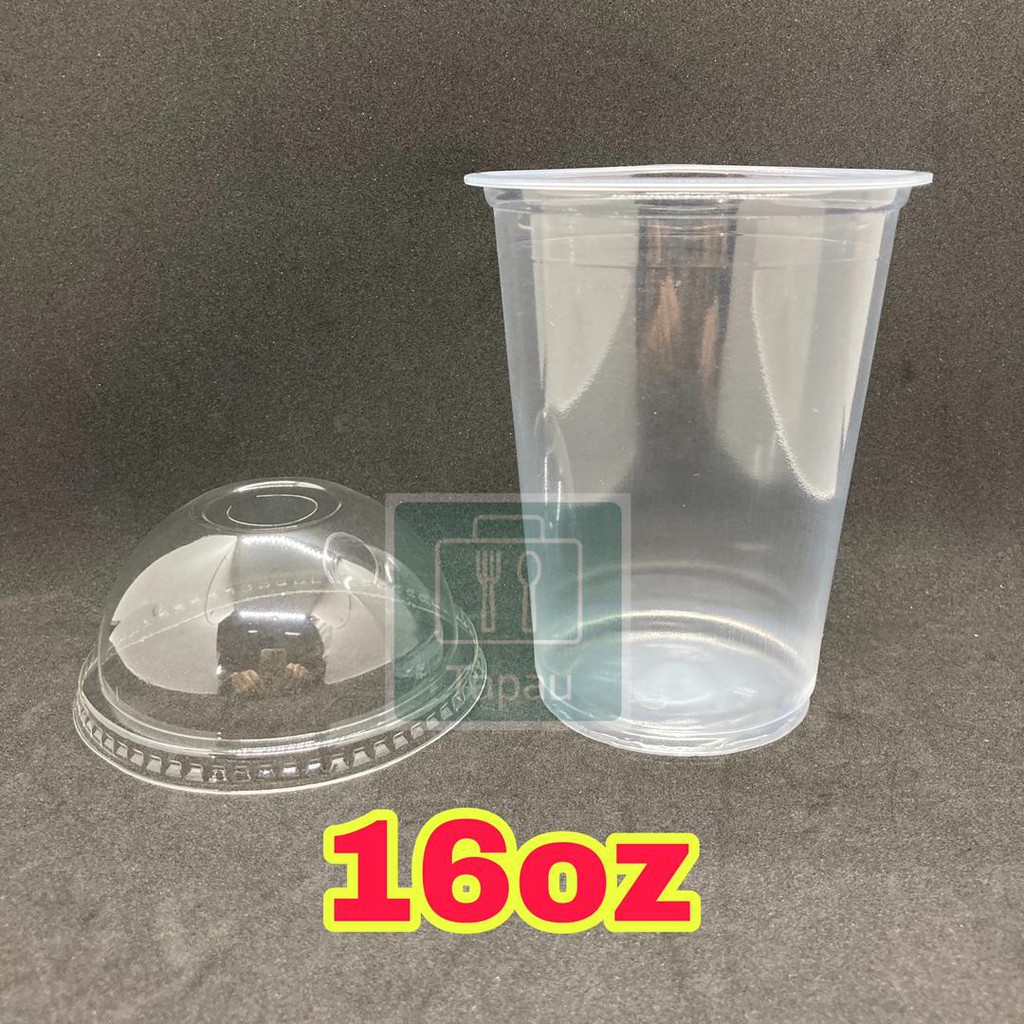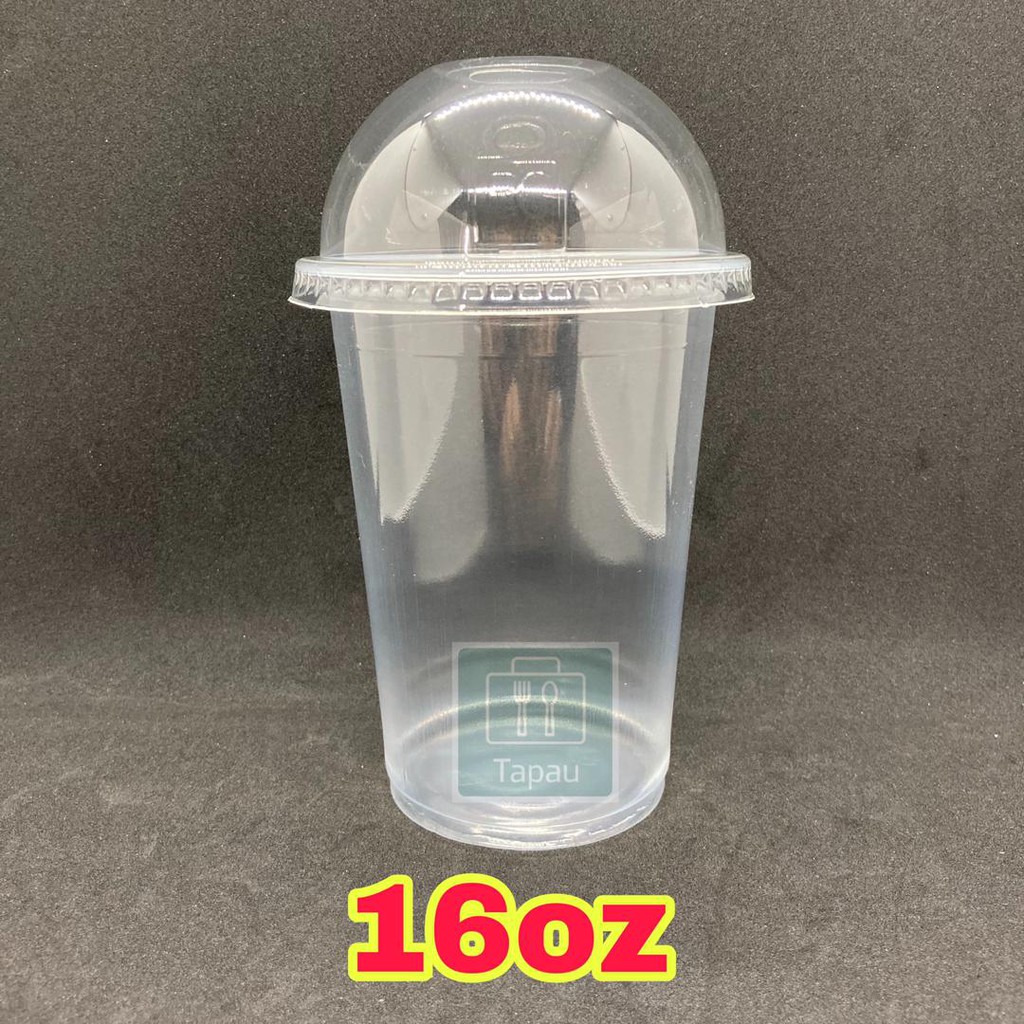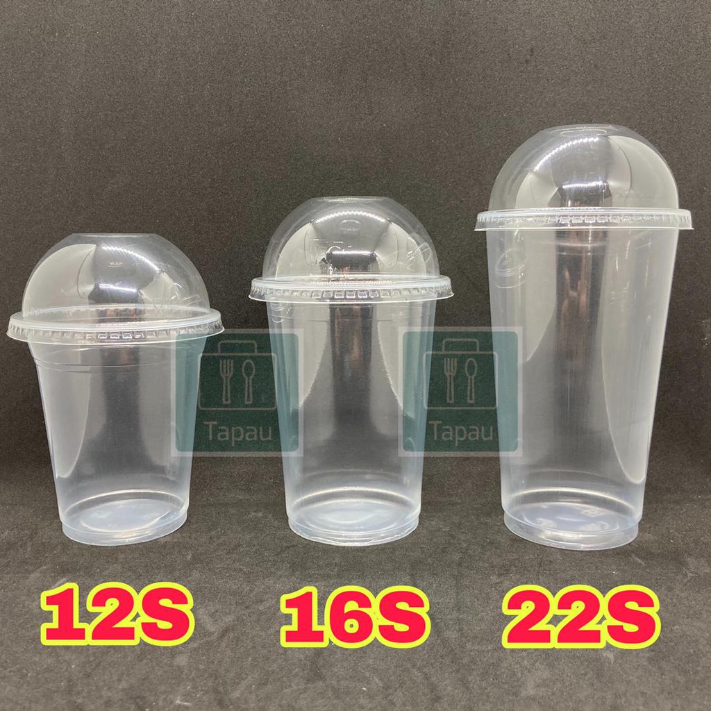 TAPAU - ( 100sets± ) EC 12oz /16oz PP Clear Cup with Dome Lid E12S / E16S - 360ml /500ml Disposable Plastic Cup / Thick